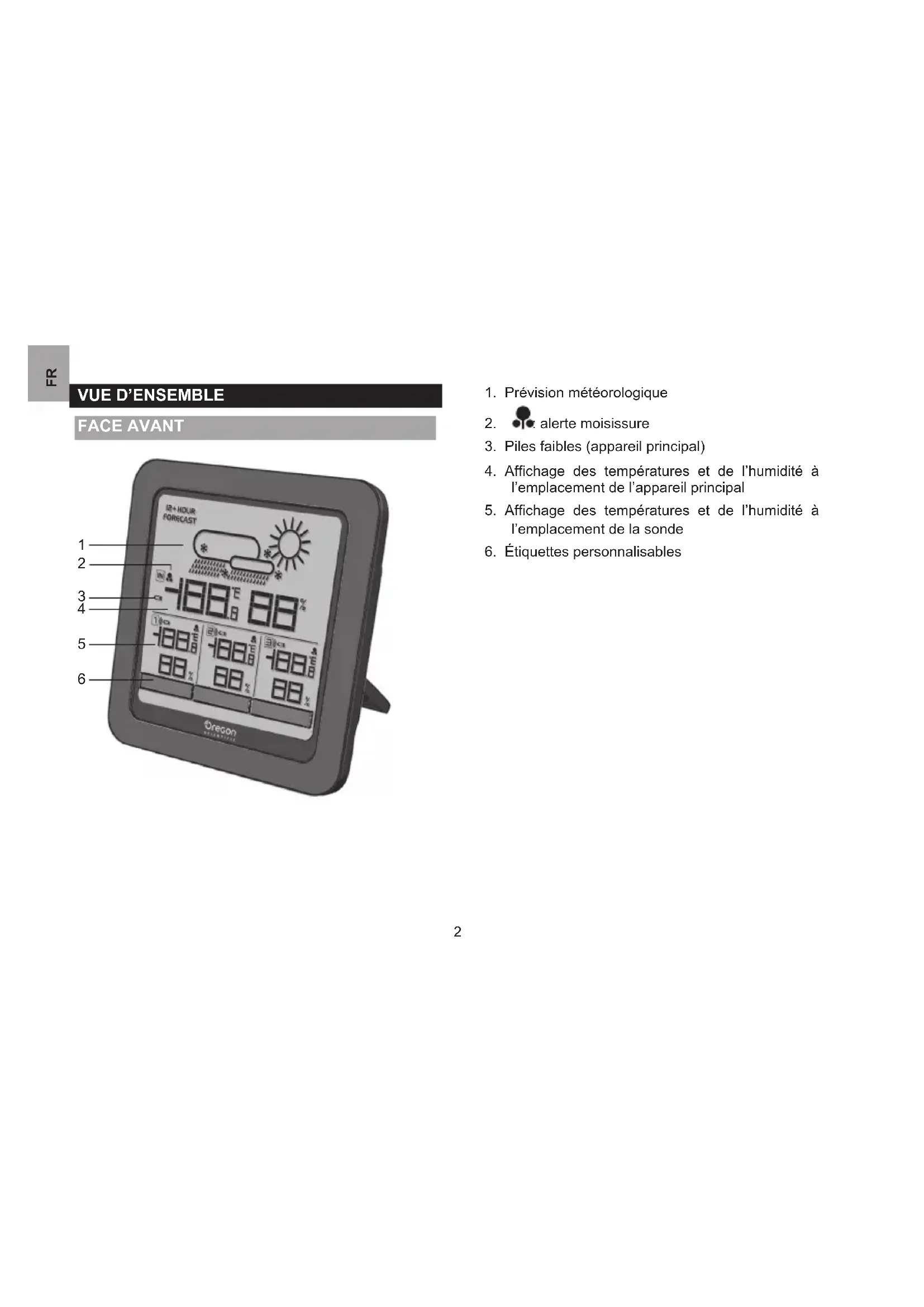 - Le poser sur certaines surfaces en bois peut endommager la finition du meuble, et Oregon Scientific ne peut en être tenu responsable. Consultez les mises en garde du fabricant du meuble pour de plus amples informations.