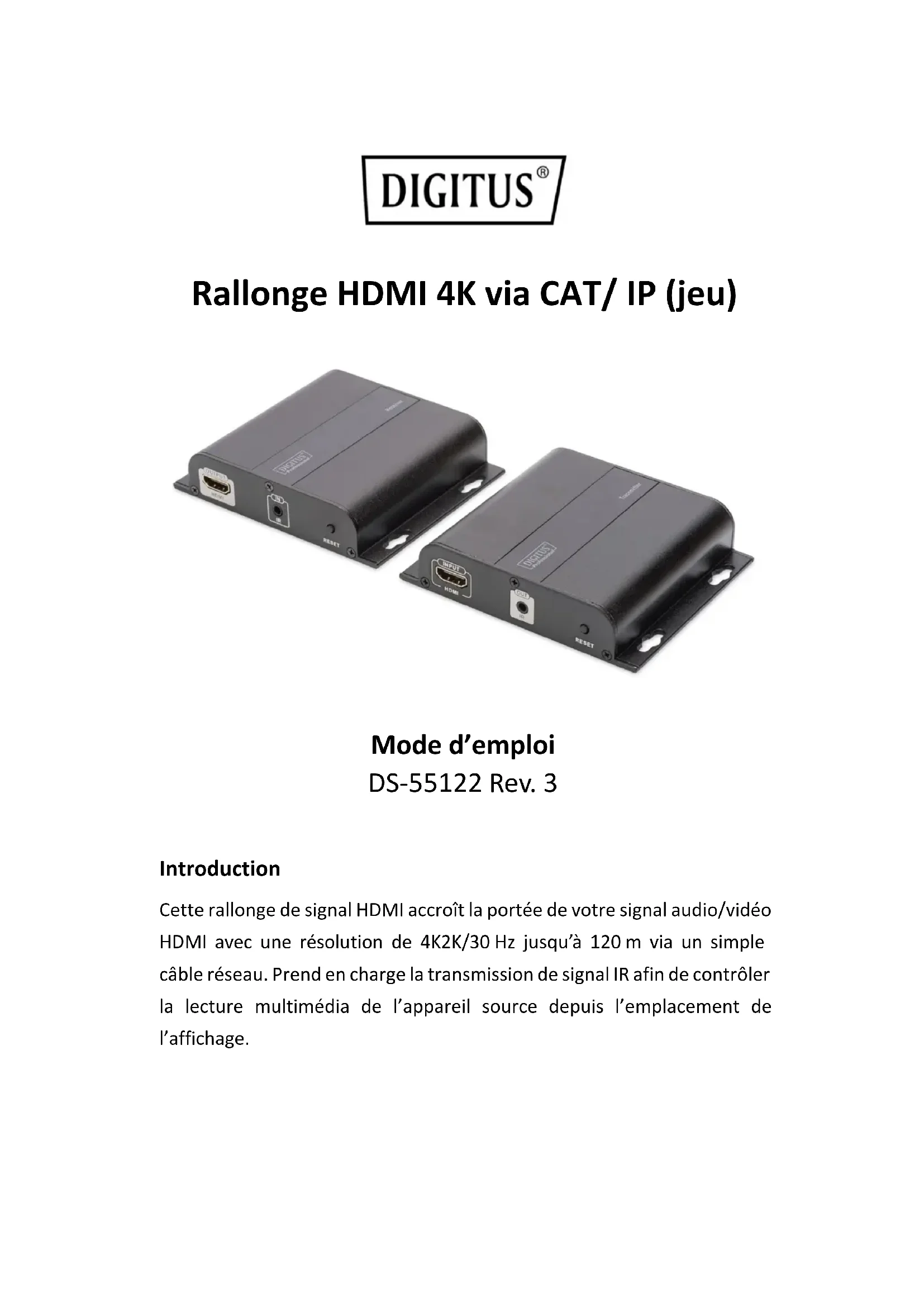 DS55122 - Extension audio/video Digitus - Notice d'utilisation et mode d'emploi gratuit