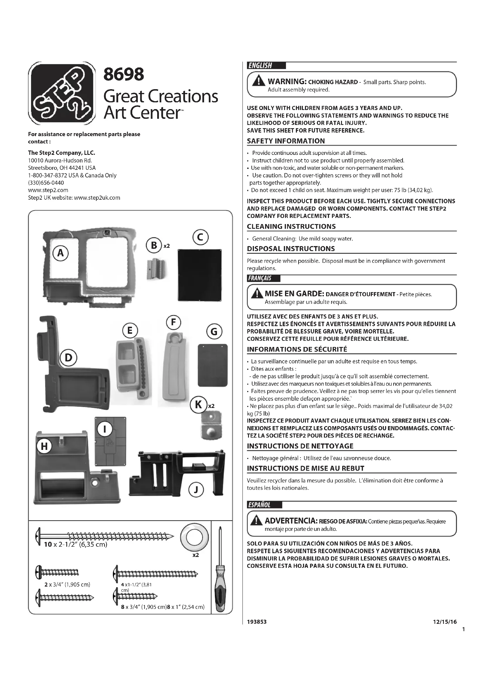 INSPECTEZ CE PRODUIT AVANT CHAQUE UTILISATION. SERREZ BIEN LES CONNEXIONS ET REMPLACEZ LES COMPOSANTS USÉS OU ENDOMMAGÉS. CONTACTEZ LA SOCIÉTÉ STEP2 POUR DES PIÈCES DE RECHANGE.