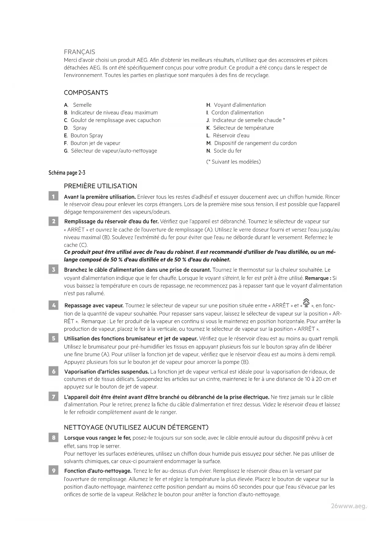 DB1720 - Fer à repasser AEG - Notice d'utilisation et mode d'emploi gratuit
