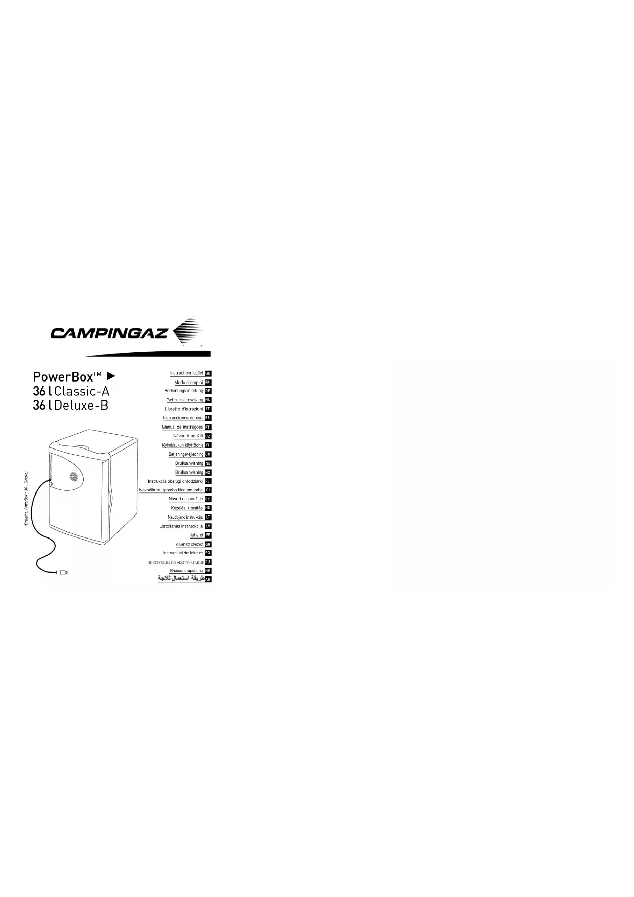FR Mode d’Emploi PowerBox™ 36l Nous vous remercions d’avoir choisi CAMPINGAZ®. Nous espérons que vous serez complètement satisfait de votre glacière thermo-électrique PowerBox™.