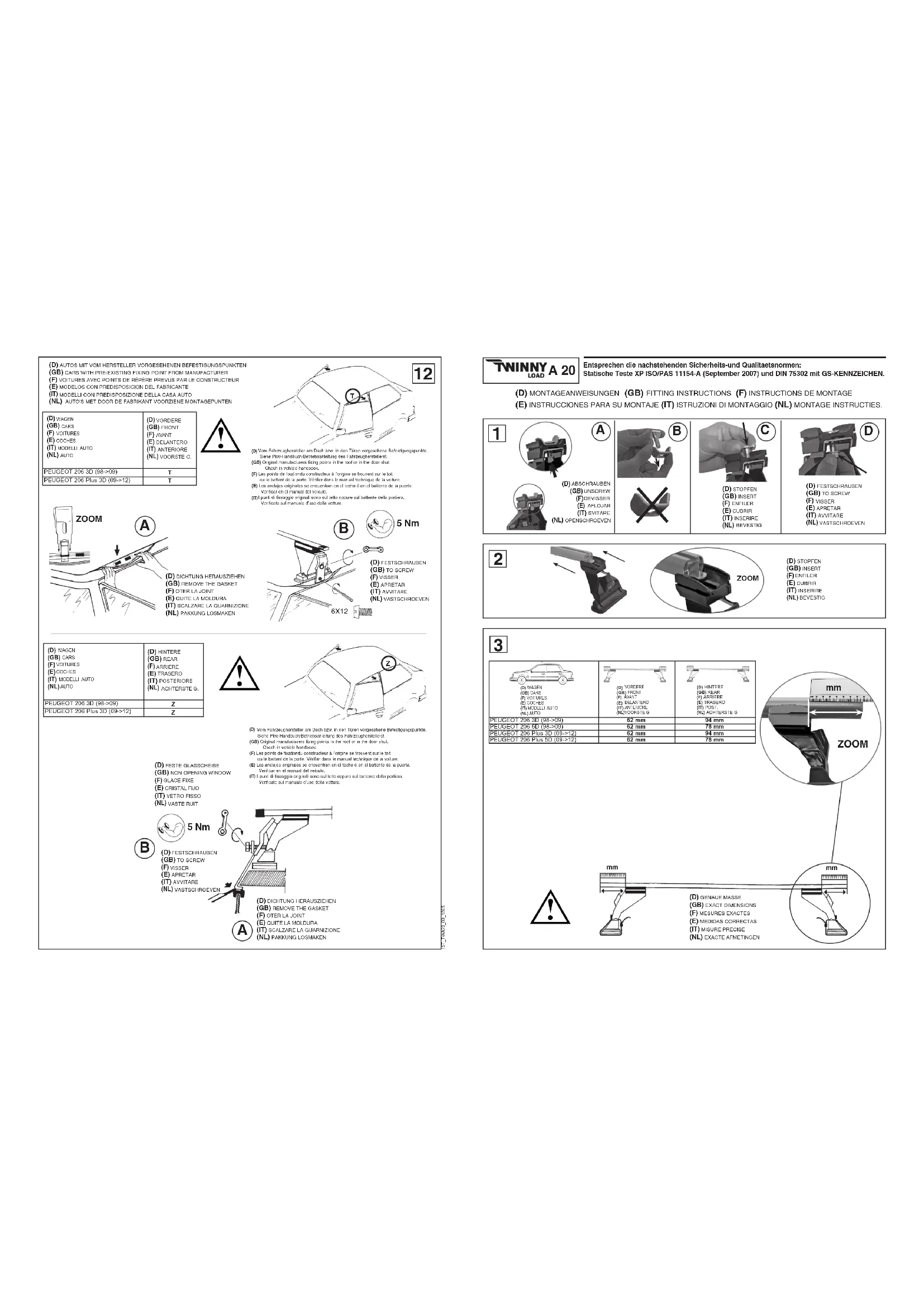 (D) LISTICI RAUBEN (GB) TO SCREW (F) VSSER (E) ARNETAR (T) AVINTAPE (NL) VASTSCHROEVEN 6X12Monter le porte-bagages, après quelques kilomètres, contrôler le serrage de toutes les vis.