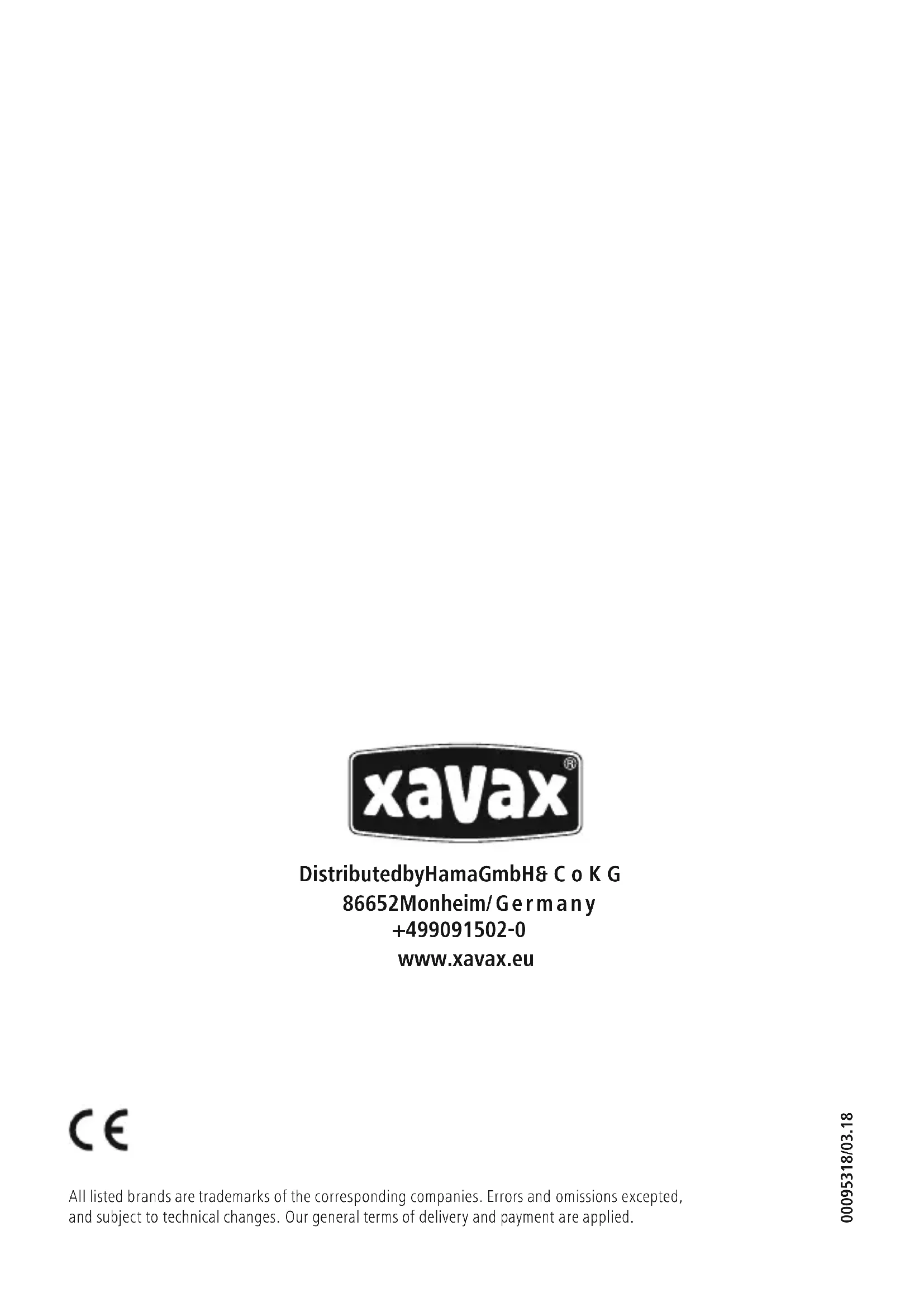Vous trouverez ici de plus amples informations concernant l'assistance: www.xavax.eu