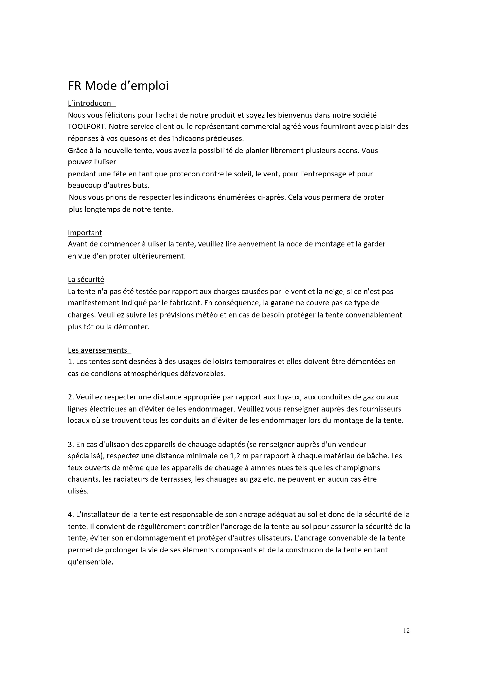 MODE D'EMPLOI 9.15 x 12m Profizelt24