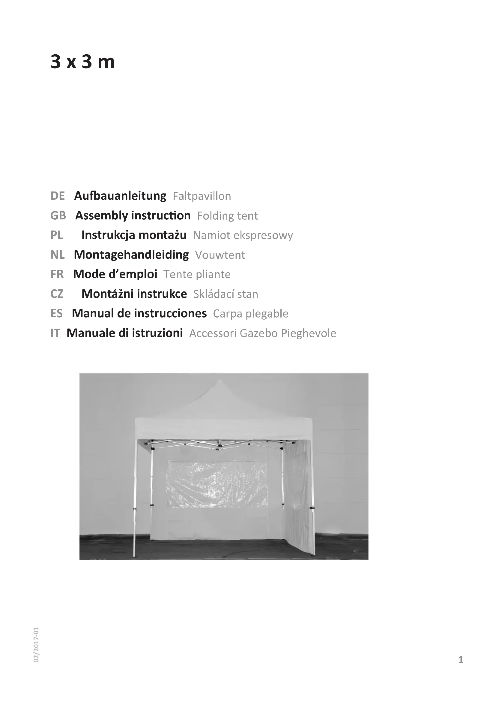 MODE D'EMPLOI 3 x 3 m Profizelt24