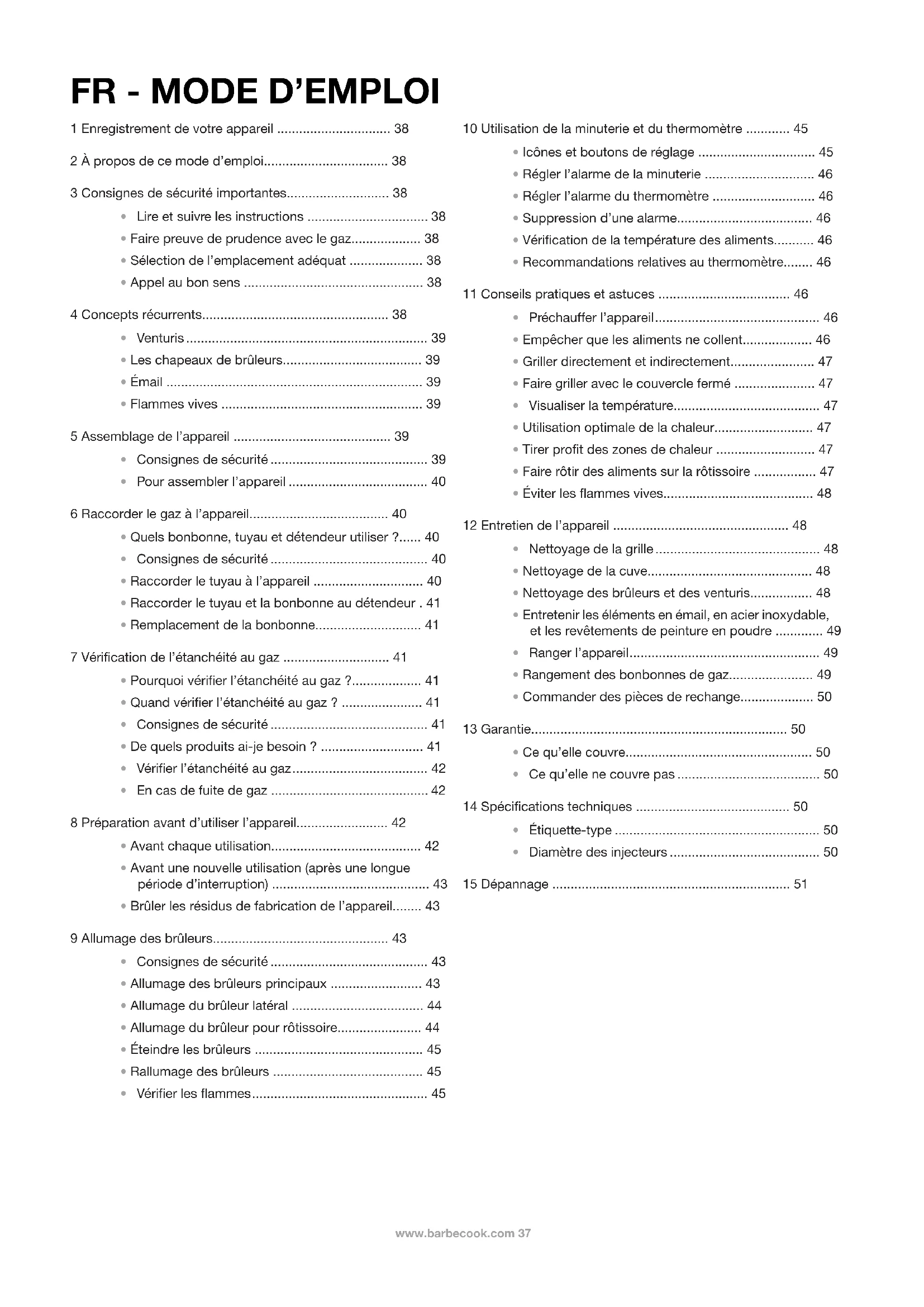 - Faire preuve de prudence avec le gaz................... 38