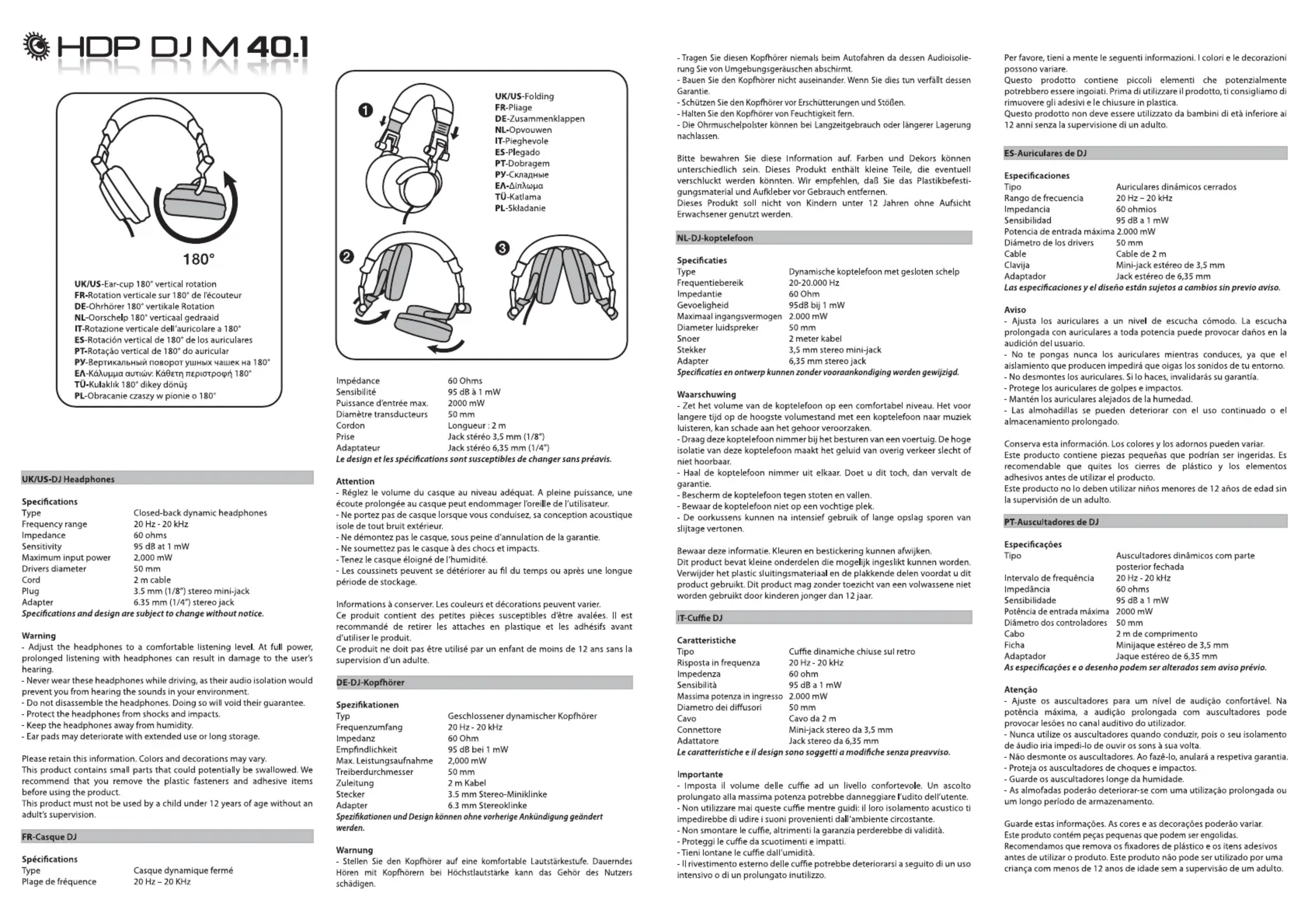 HDP DJ M 40.1 - Ecouteur HERCULES - Notice d'utilisation et mode d'emploi gratuit