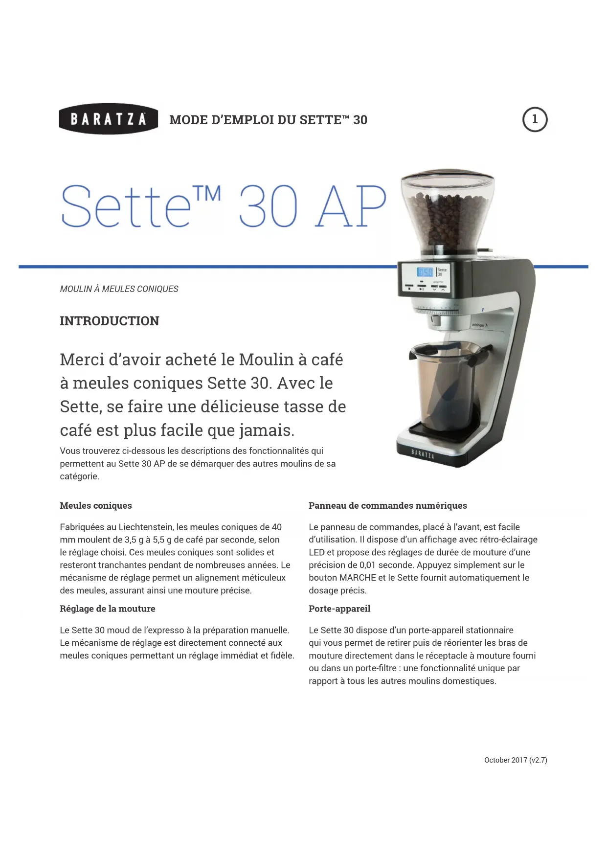 Sette 30 - Moulin à café Baratza - Notice d'utilisation et mode d'emploi gratuit