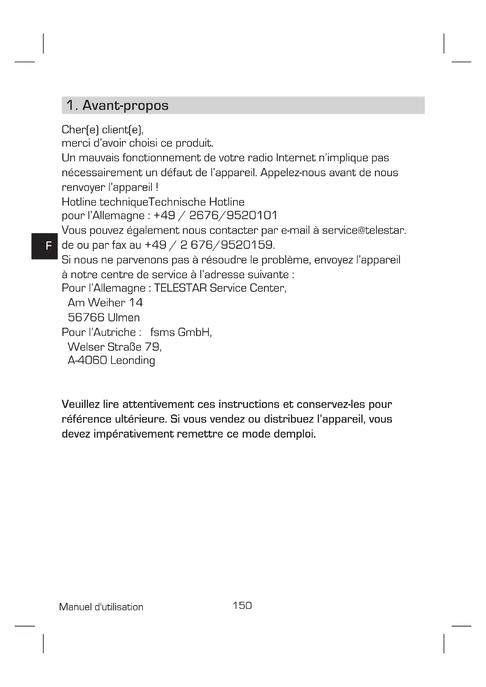 ou par courrier à : service@telestar.de