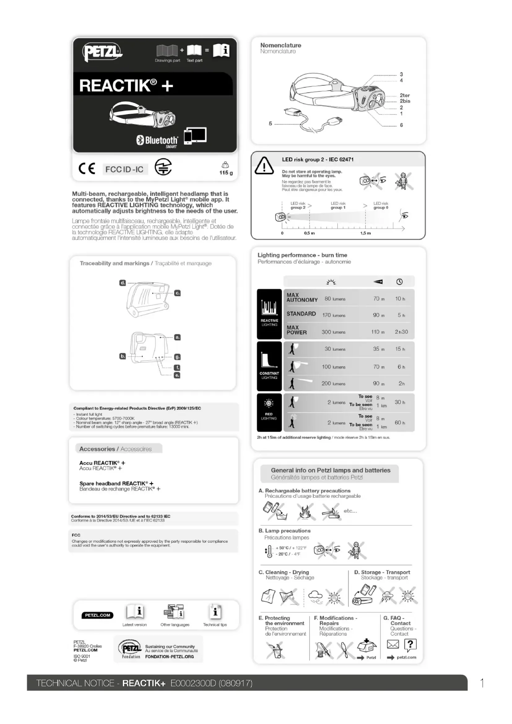 Reactik+ 300 - Lampe de poche Petzl - Notice d'utilisation et mode d'emploi gratuit