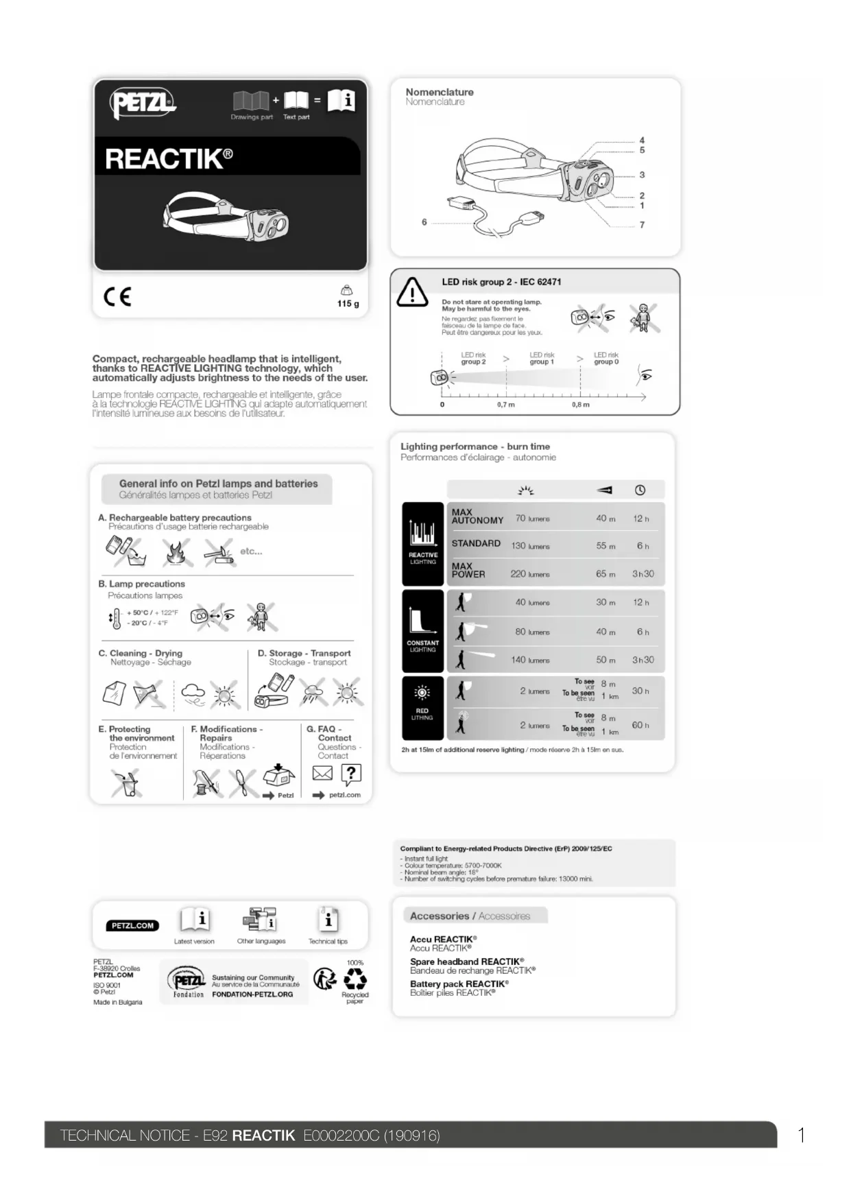 Reactik 220 - Lampe de poche Petzl - Notice d'utilisation et mode d'emploi gratuit