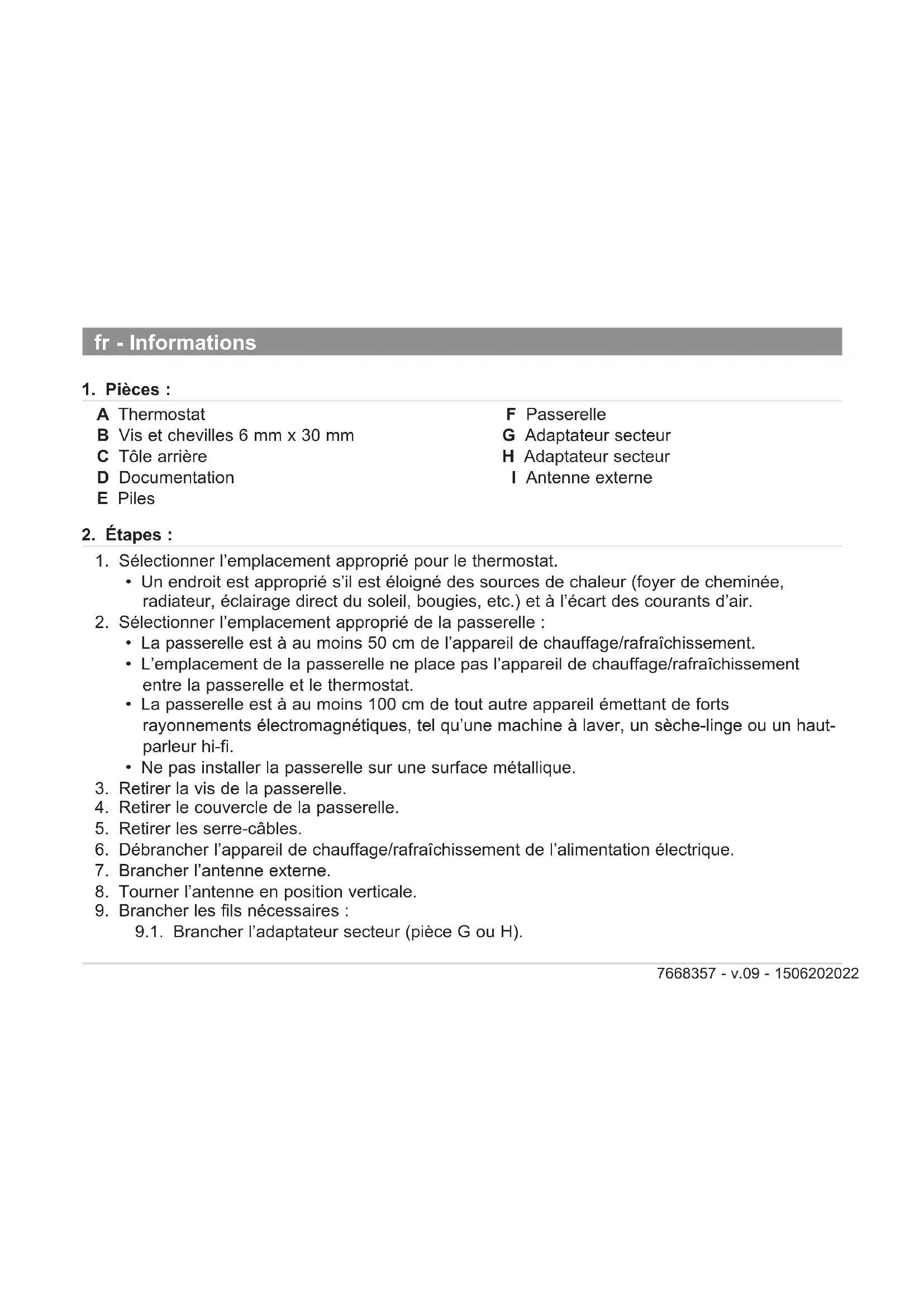 L'installation de la passerelle doit etre effectuee par une personne qualifiee.