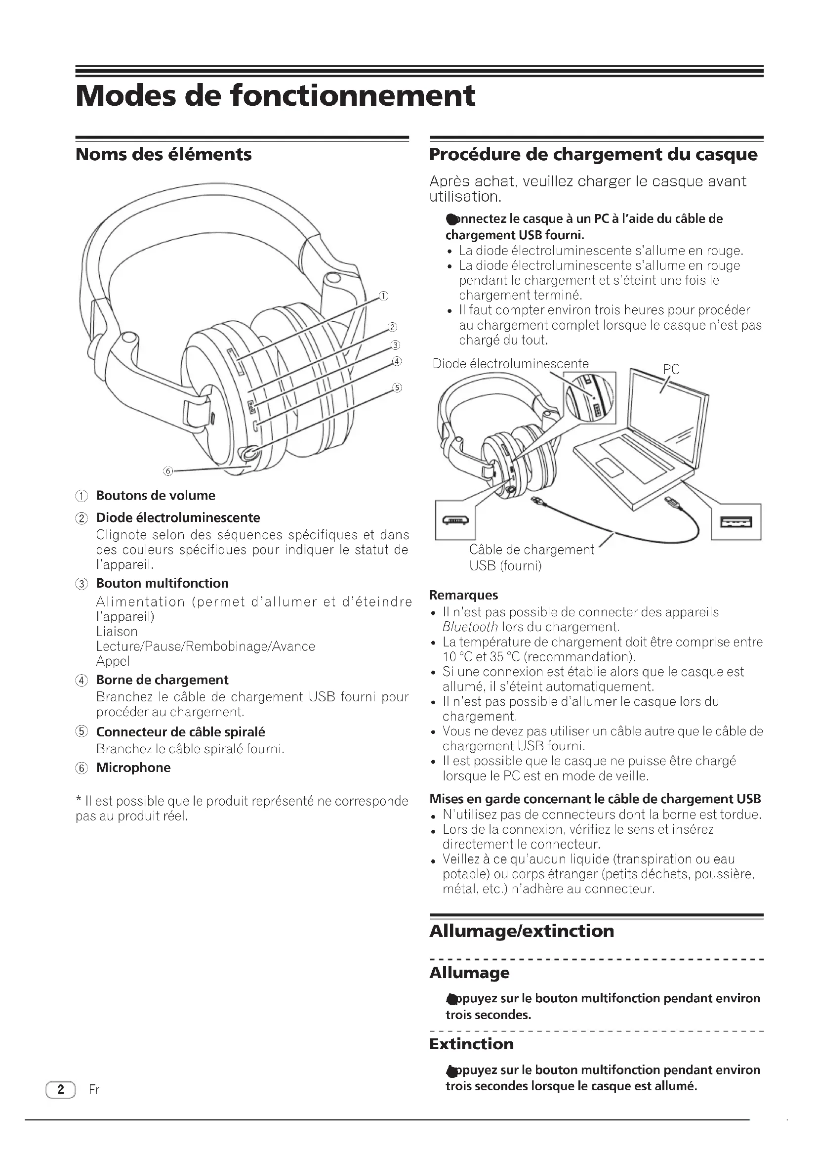 - Il est possible que le produit représenté ne corresponde pas au produit réel. Procédure de chargement du casque Après achat, veuillez charger le casque avant utilisation.