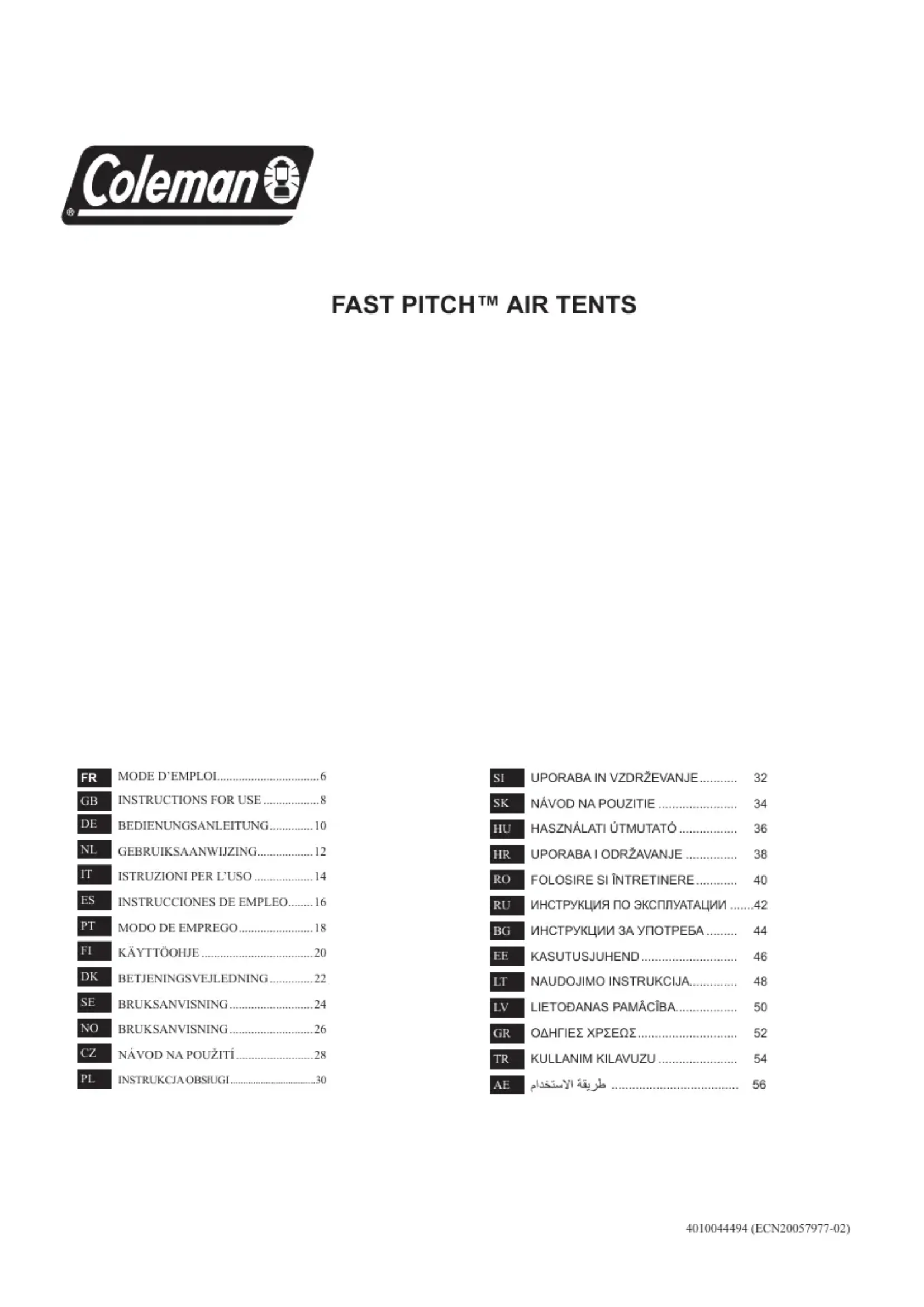 Air Valdes 4 - Tente COLEMAN - Notice d'utilisation et mode d'emploi gratuit
