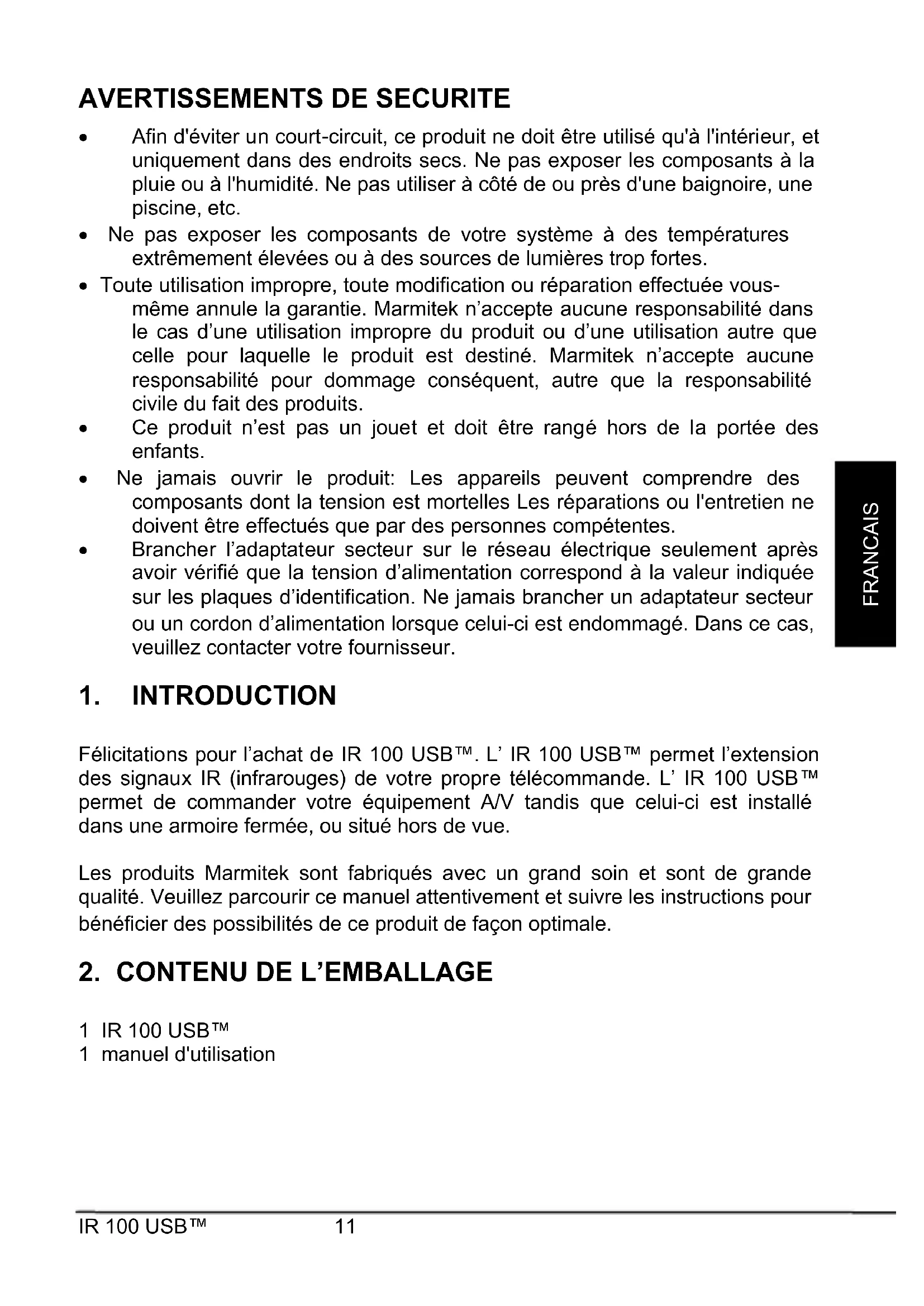 1 IR 100 USB™ 1 manuel d'utilisation12 © MARMITEK