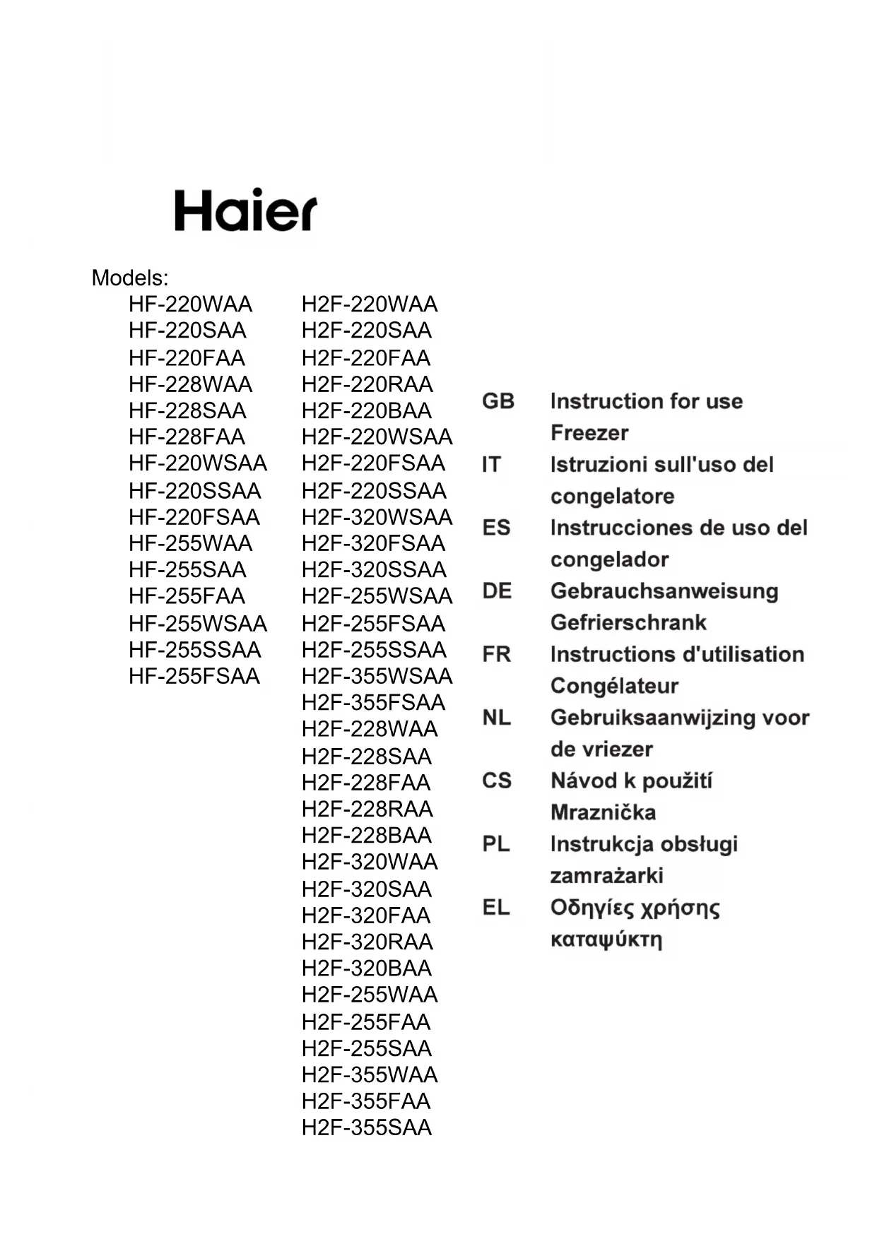 H2F220WAA - Congélateur HAIER - Notice d'utilisation et mode d'emploi gratuit