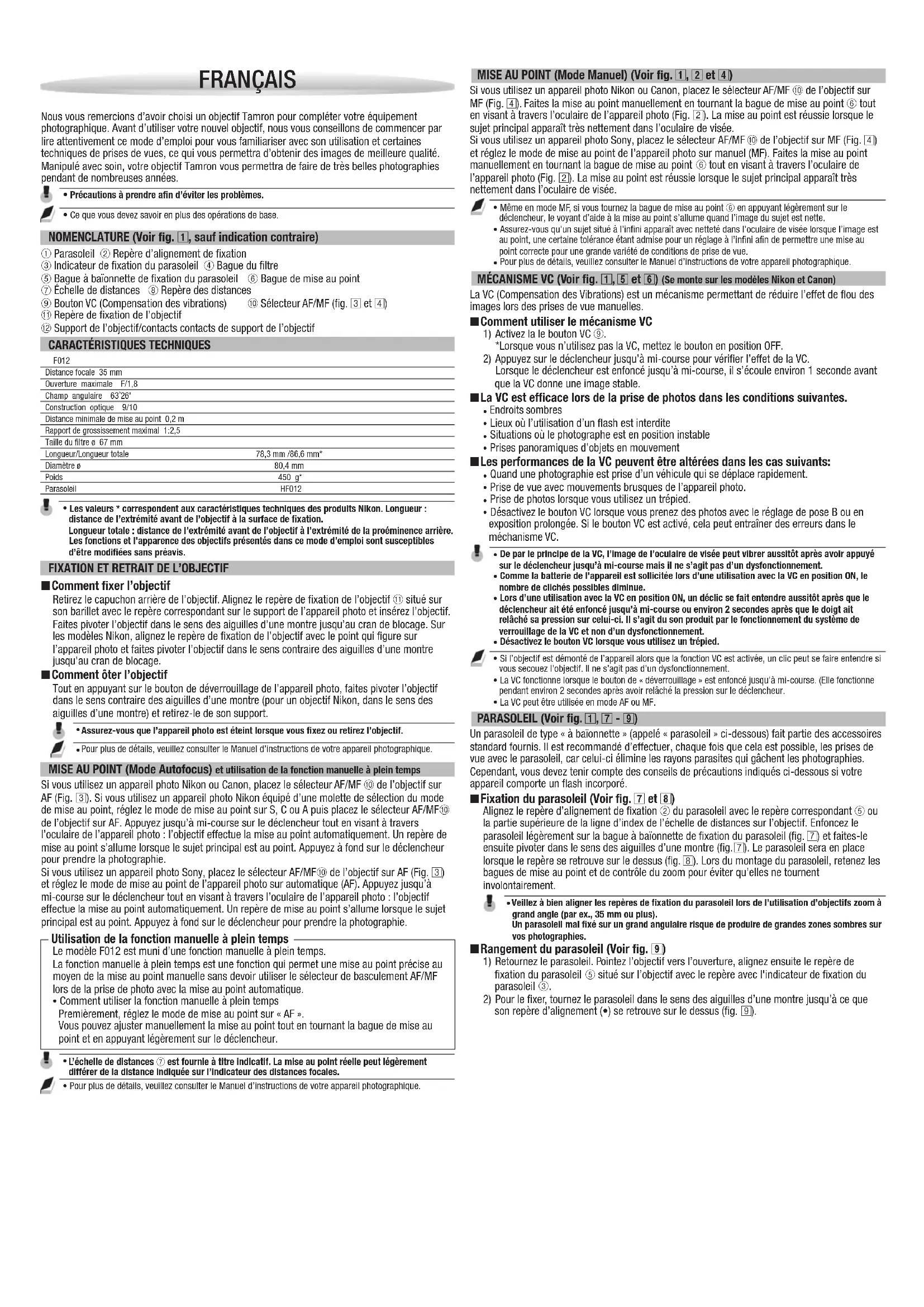 MODE D'EMPLOI SP 35mm f1.8 Di VC USD TAMRON