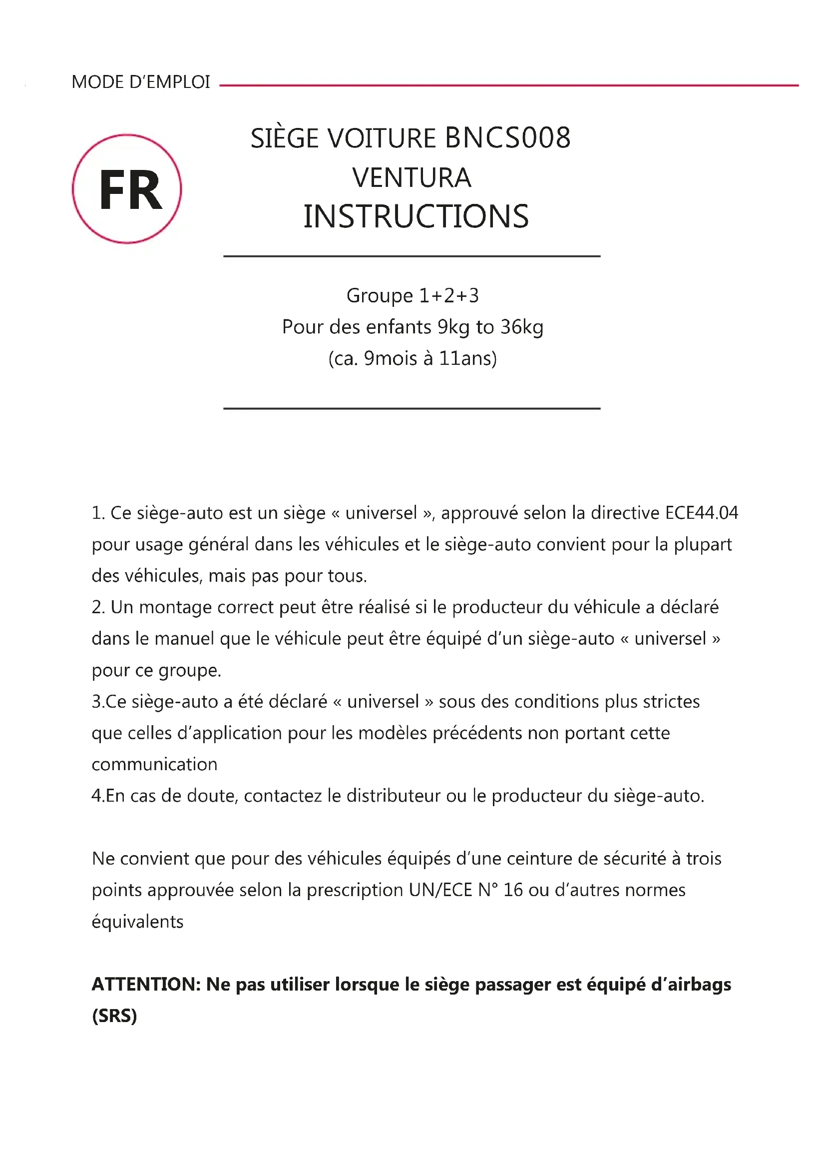 Ventura - Siège de voiture Baninni - Notice d'utilisation et mode d'emploi gratuit