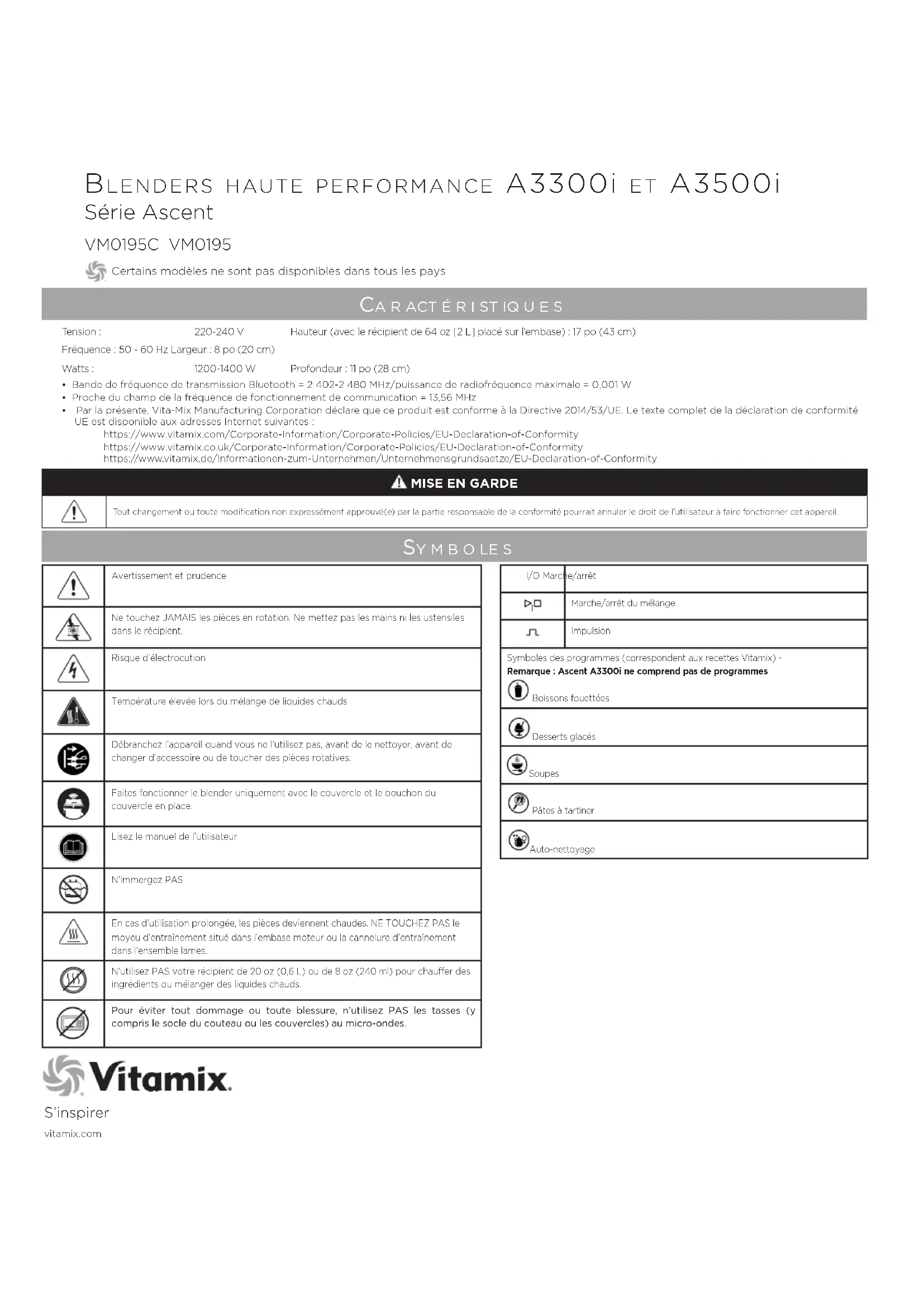 Ascent A3500i - Blender Vitamix - Notice d'utilisation et mode d'emploi gratuit