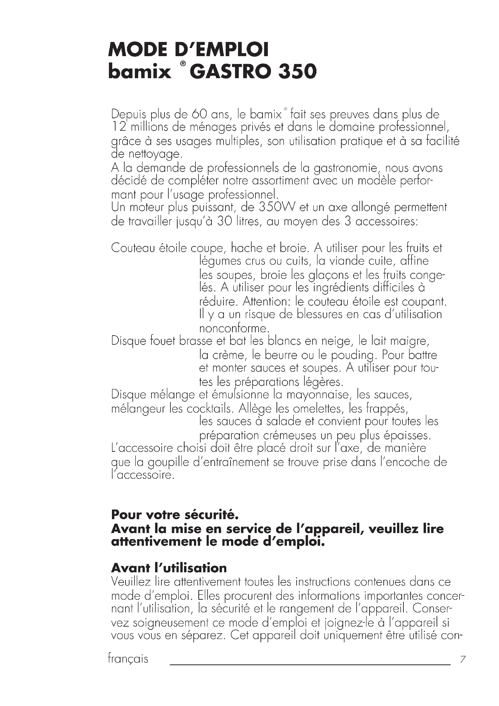MODE D'EMPLOI Gastro G350 BAMIX