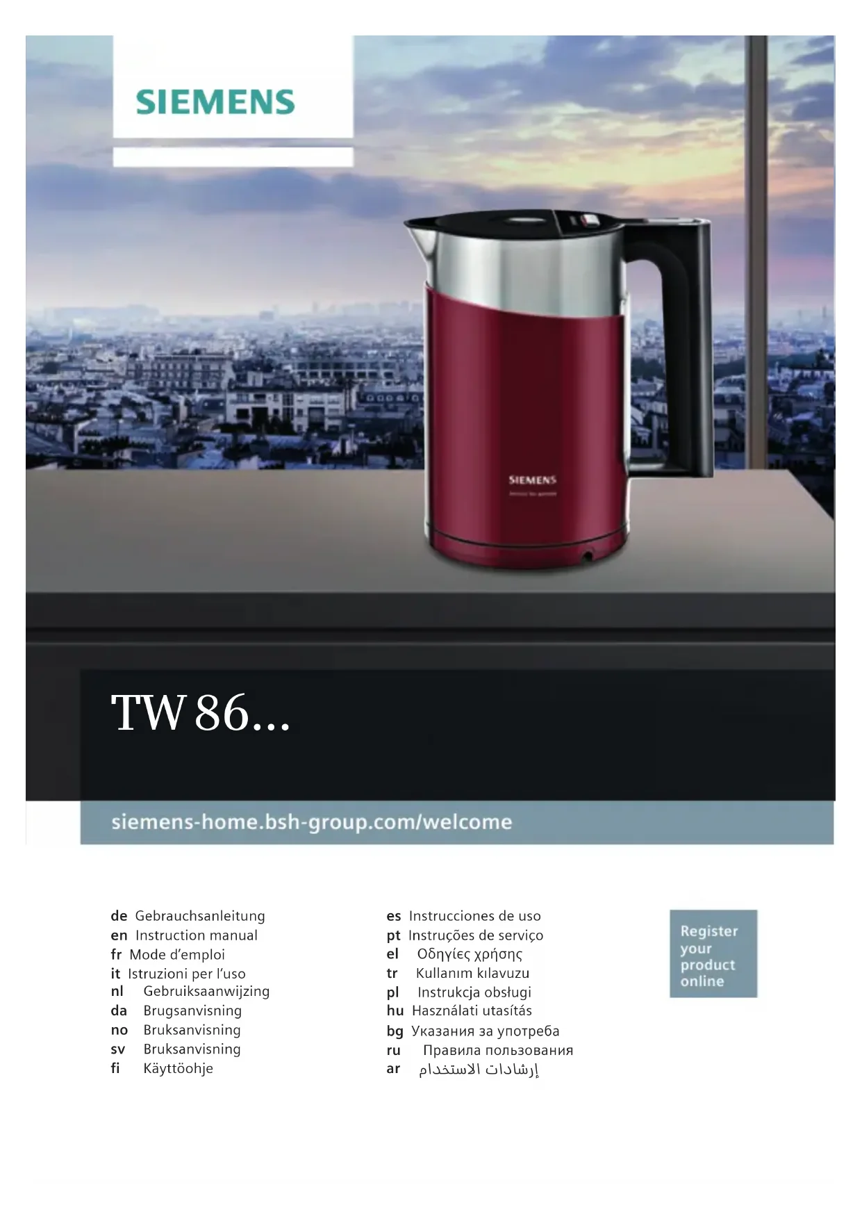 TW86104P - Bouilloire SIEMENS - Notice d'utilisation et mode d'emploi gratuit