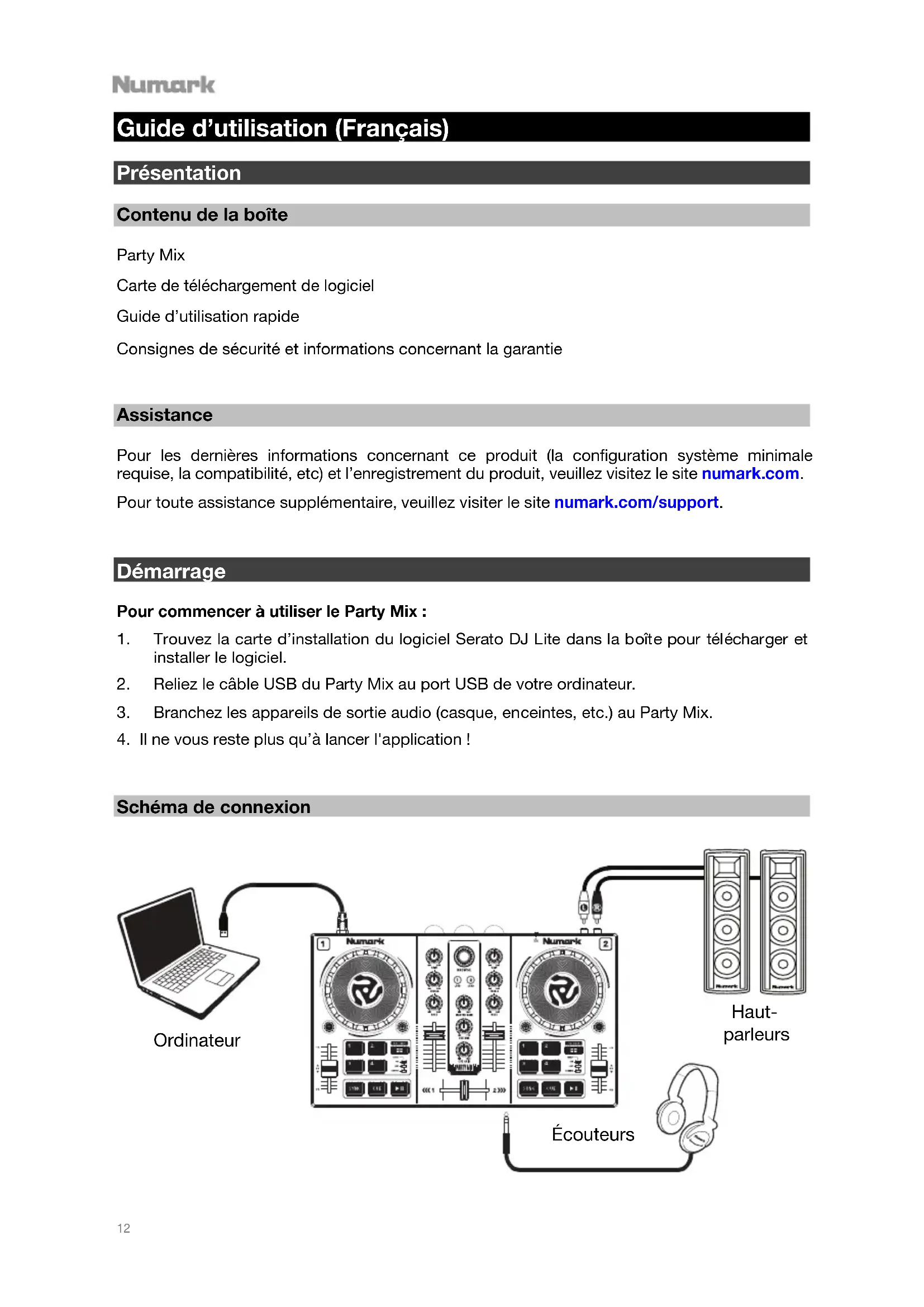 Retrouvez gratuitement la notice de l'appareil Party Mix NUMARK au format PDF.