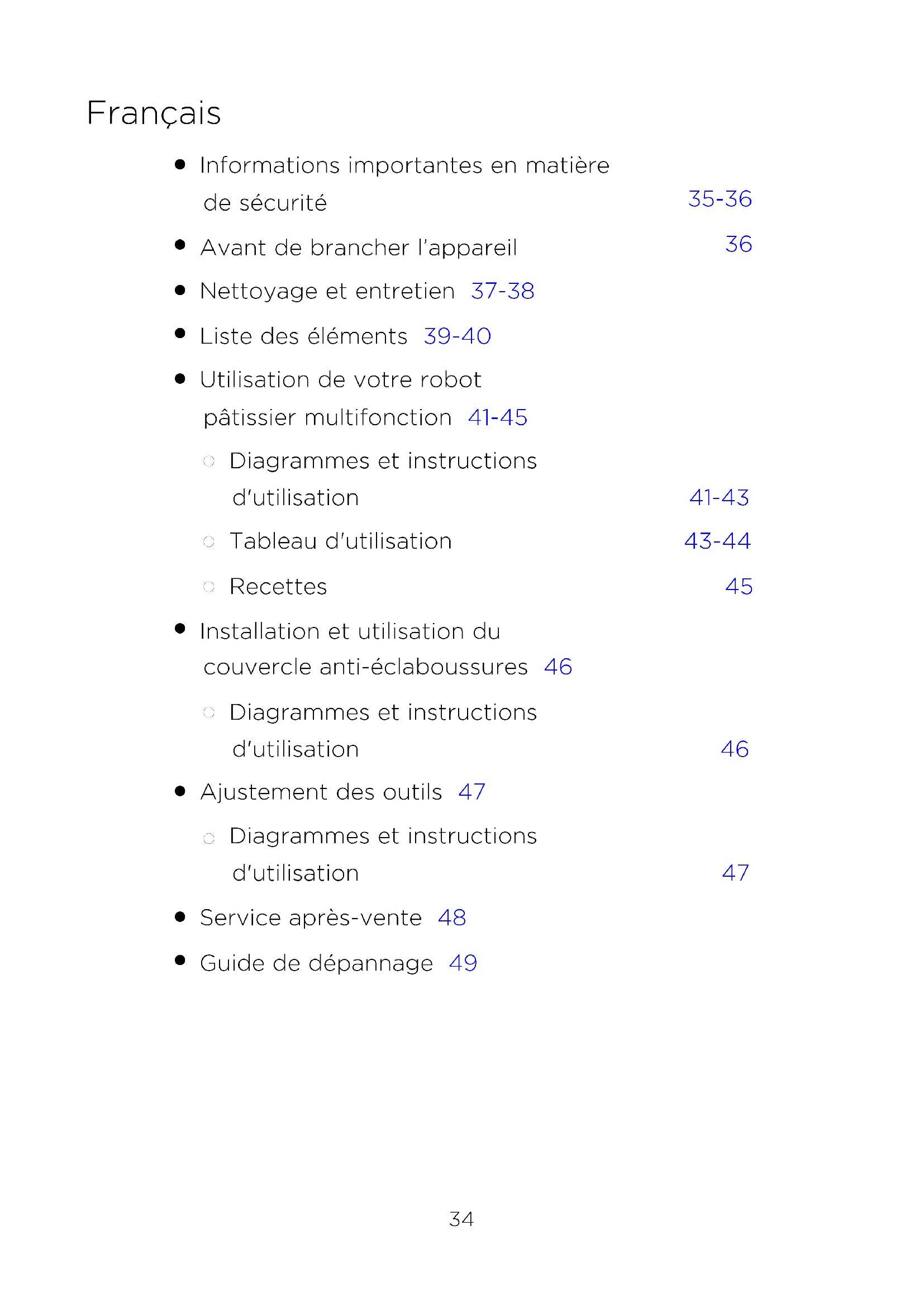 N'utilisez pas votre appareil près du bord ou en surplomb par rapport à la surface de travail. Ne forcez pas sur un accessoire installé sur l'appareil, cette action est susceptible de le rendre instable et de le faire basculer, entraînant un risque de blessures.36