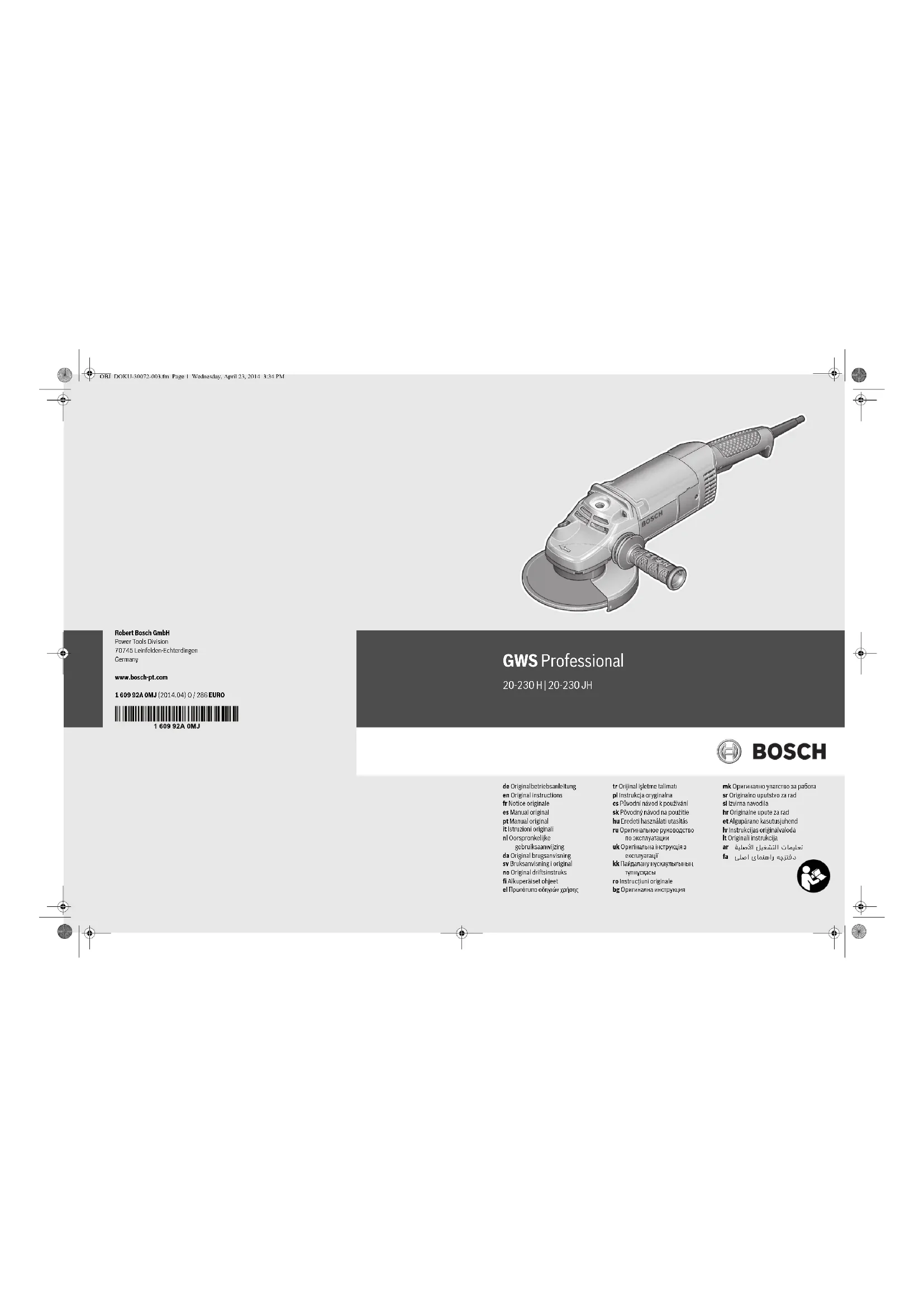 Retrouvez gratuitement la notice de l'appareil GWS 20230 H BOSCH au format PDF.