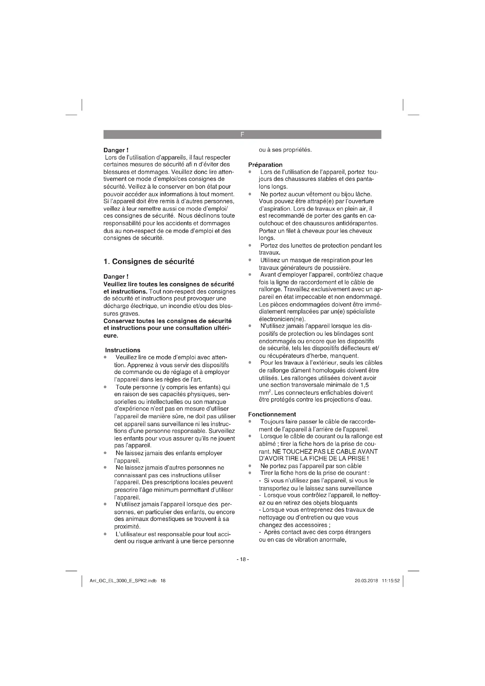 main-bras, si l’appareil est utilisé pendant une longue période ou s’il n’a pas été employé ou entretenu dans les règles de l’art. Anl_GC_EL_3000_E_SPK2.indb 20Anl_GC_EL_3000_E_SPK2.indb 20 20.03.2018 11:15:5220.03.2018 11:15:52F