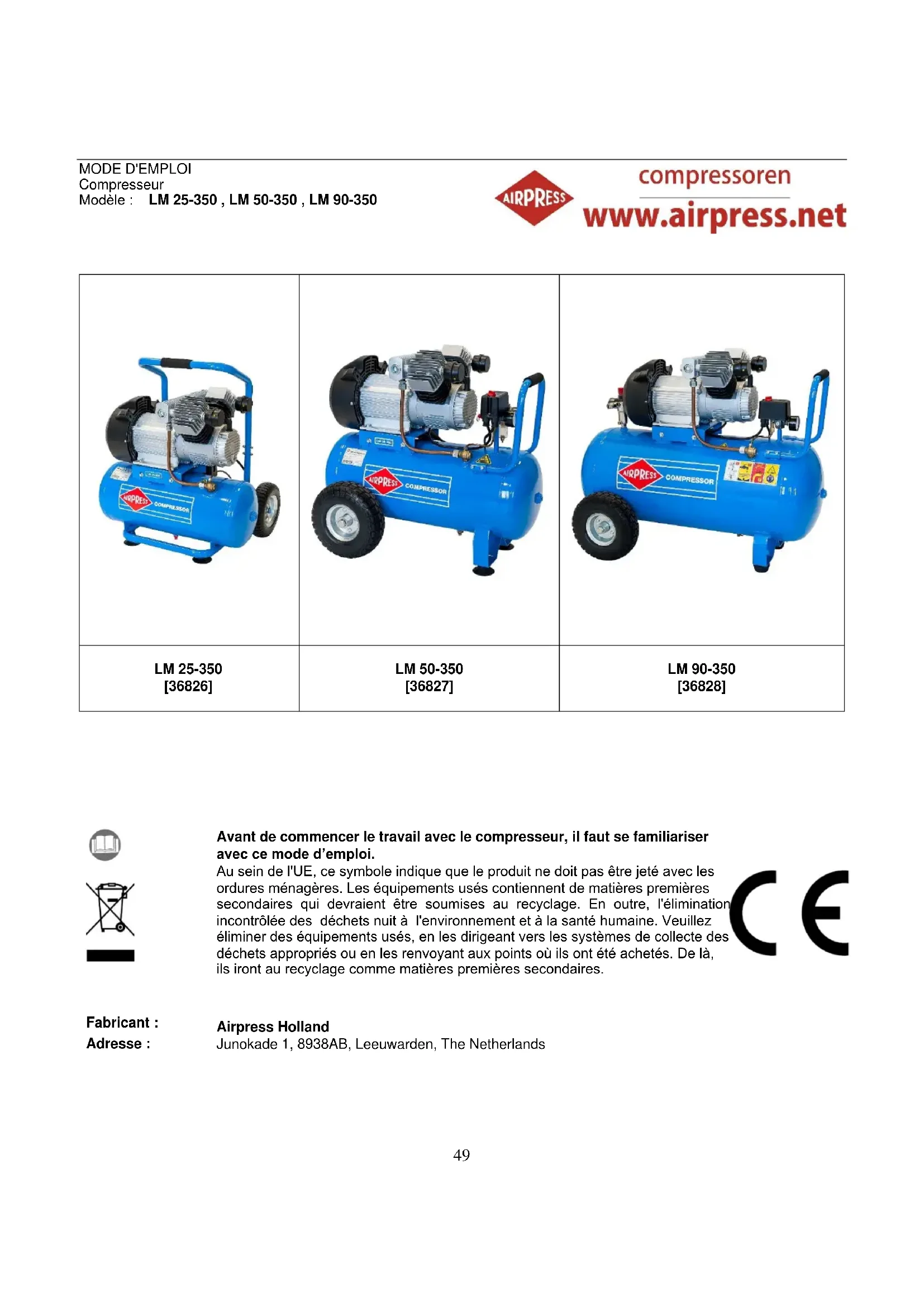 LM 90350 - Compresseur Airpress - Notice d'utilisation et mode d'emploi gratuit