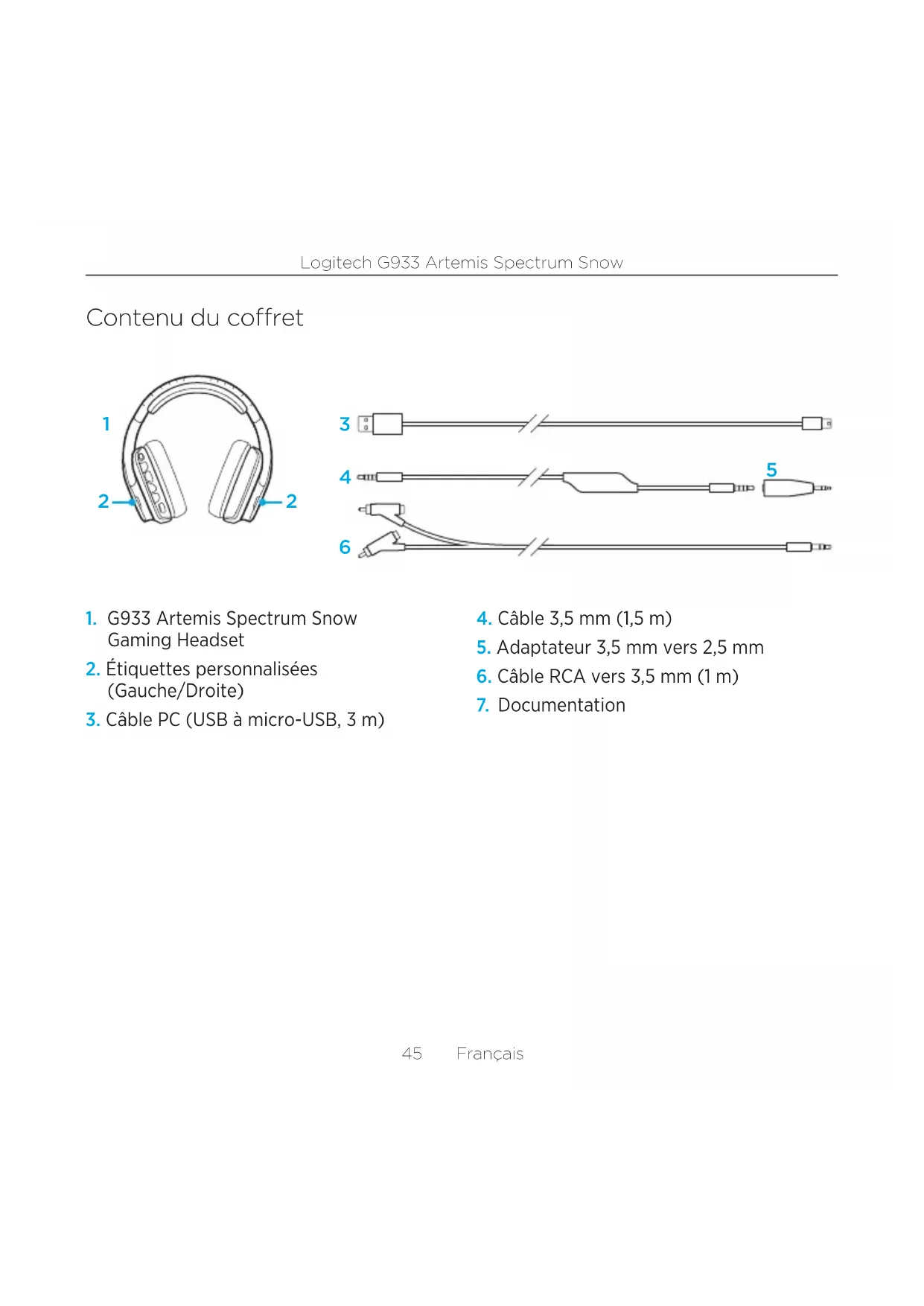 5Logitech G933 Artemis Spectrum Snow 46 Français Caractéristiques