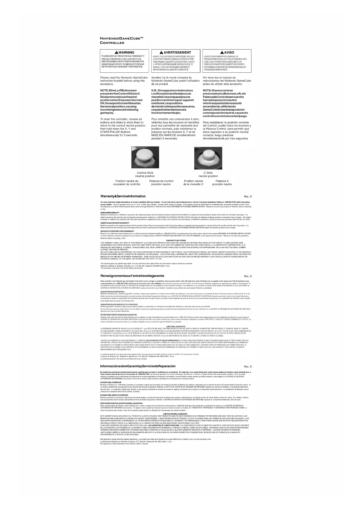 Nintendo garantit à l’acheteur original que le produit (logiciel ou accessoire) ne connaîtra aucun défaut de matériaux ou de main-d’oeuvre pour une période de trois (3) mois suivant sa date d’achat. Si un tel défaut couvert par la présente garantie se produit pendant cette période de trois (3) mois, Nintendo ou un CENTRE DE RÉPARATION AUTORISÉ DE NINTENDO réparera sans frais le produit défectueux. ENTRETIEN APRÈS ÉCHÉANCE DE LA GARANTIE Veuillez visiter notre site internet www.nintendo.com ou appelez la Ligne d’assistance aux consommateurs au 1 (800) 255-3700 pour trouver des renseignements sur les problèmes et solutions ou pour trouver le CENTRE DE RÉPARATION AUTORISÉ NINTENDO le plus près de chez vous. Dans certains cas, il peut s’avérer nécessaire d’expédier le produit, PORT PAYÉ ET ASSURÉ CONTRE DOMMAGES ET PERTE, au centre d’entretien le plus près de chez vous.Veuillez n’expédier aucun produit sans appeler Nintendo au préalable.