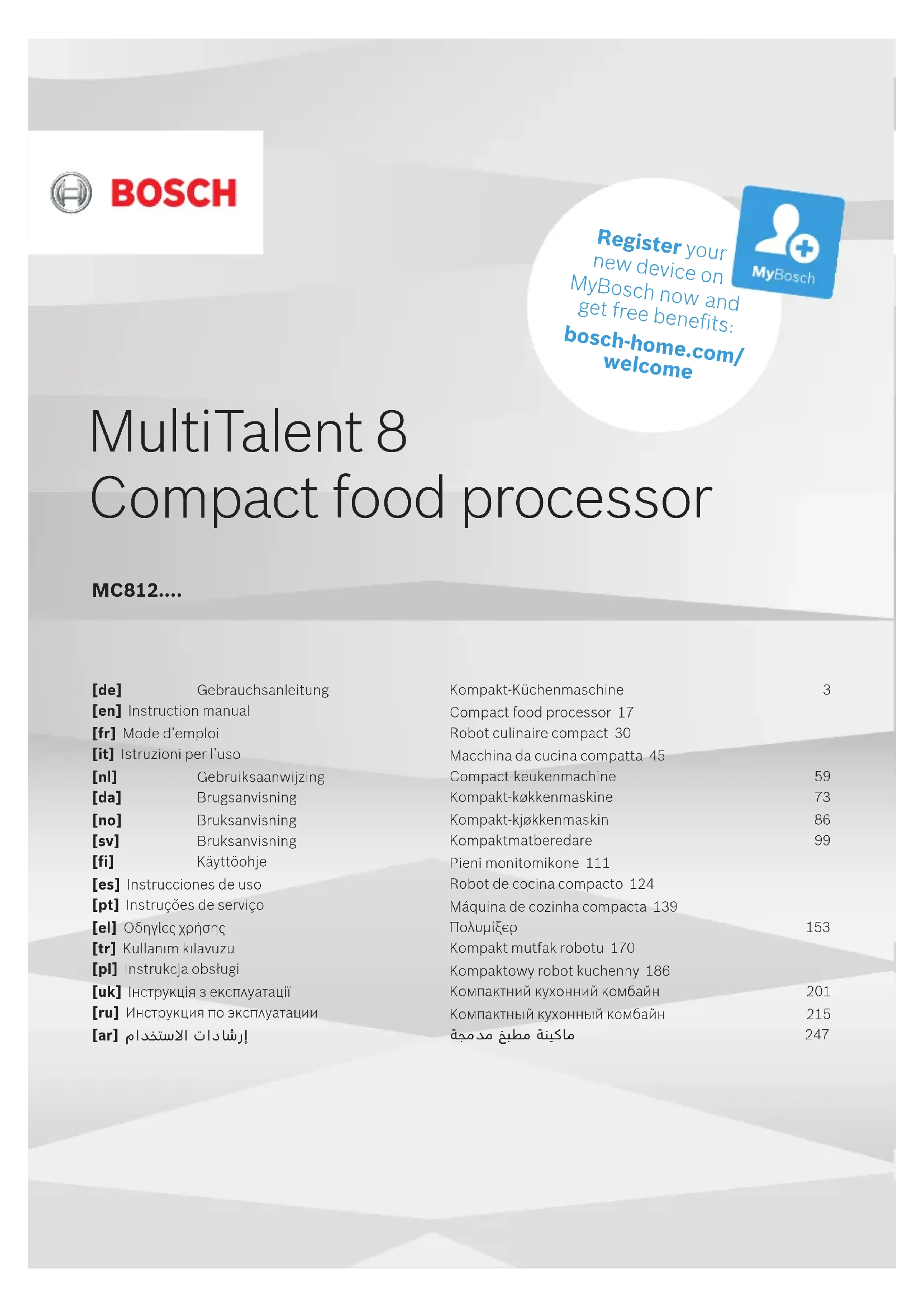 Retrouvez gratuitement la notice de l'appareil Multitalent 8 MC812M865 BOSCH au format PDF.