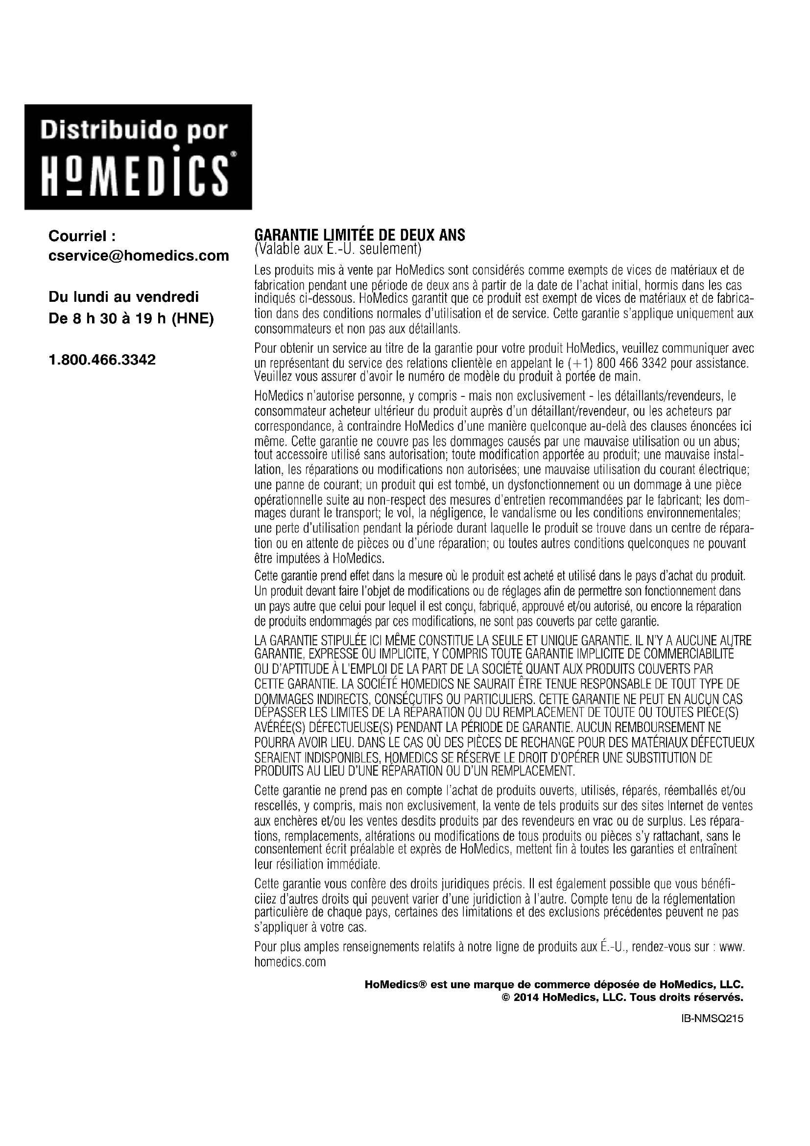 ENREGISTREZ Votre Produit Sur: www.homedics.com/register Votre contribution concernant ce produit est précieuse et nous permettra de mieux êtreà même de concevoir les produits auxquels vous aspirez.