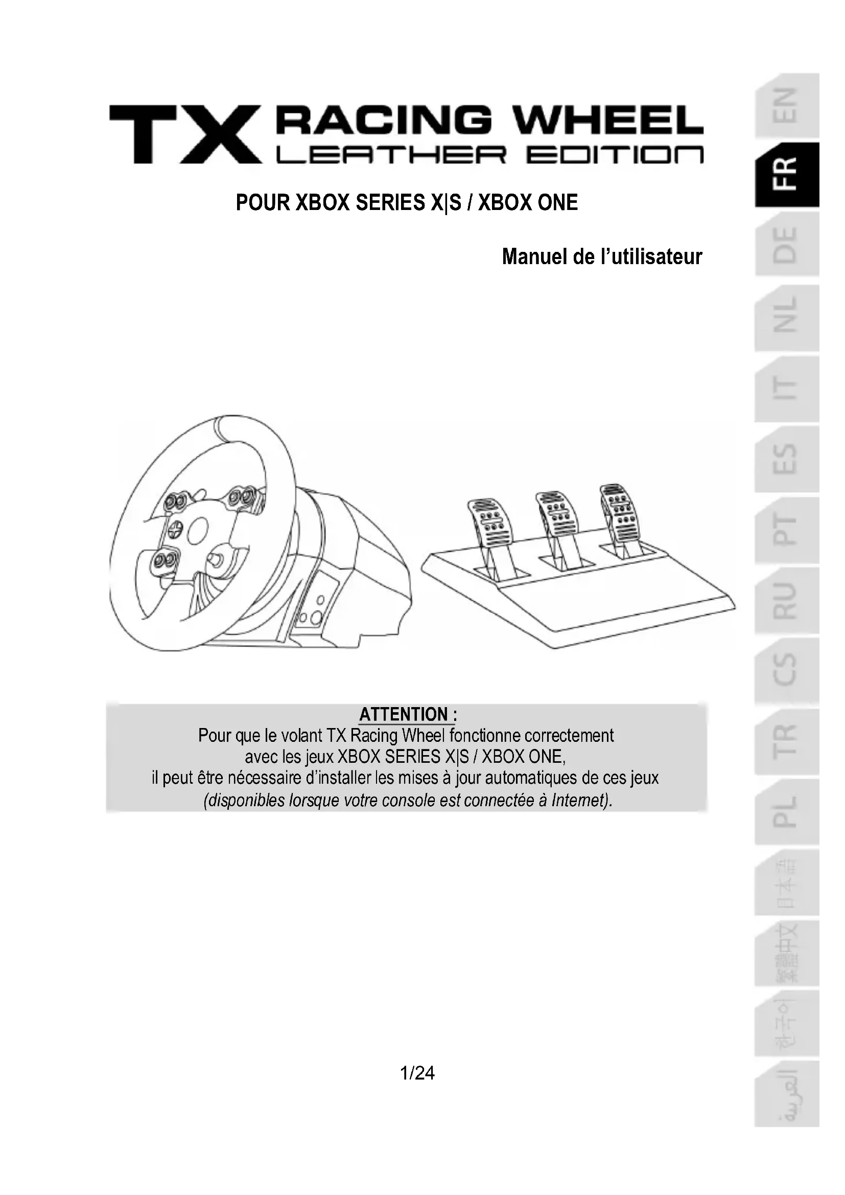 ATTENTION : Pour que le volant TX Racing Wheel fonctionne correctement avec les jeux XBOX SERIES X|S / XBOX ONE, il peut être nécessaire d’installer les mises à jour automatiques de ces jeux (disponibles lorsque votre console est connectée à Internet).2/24