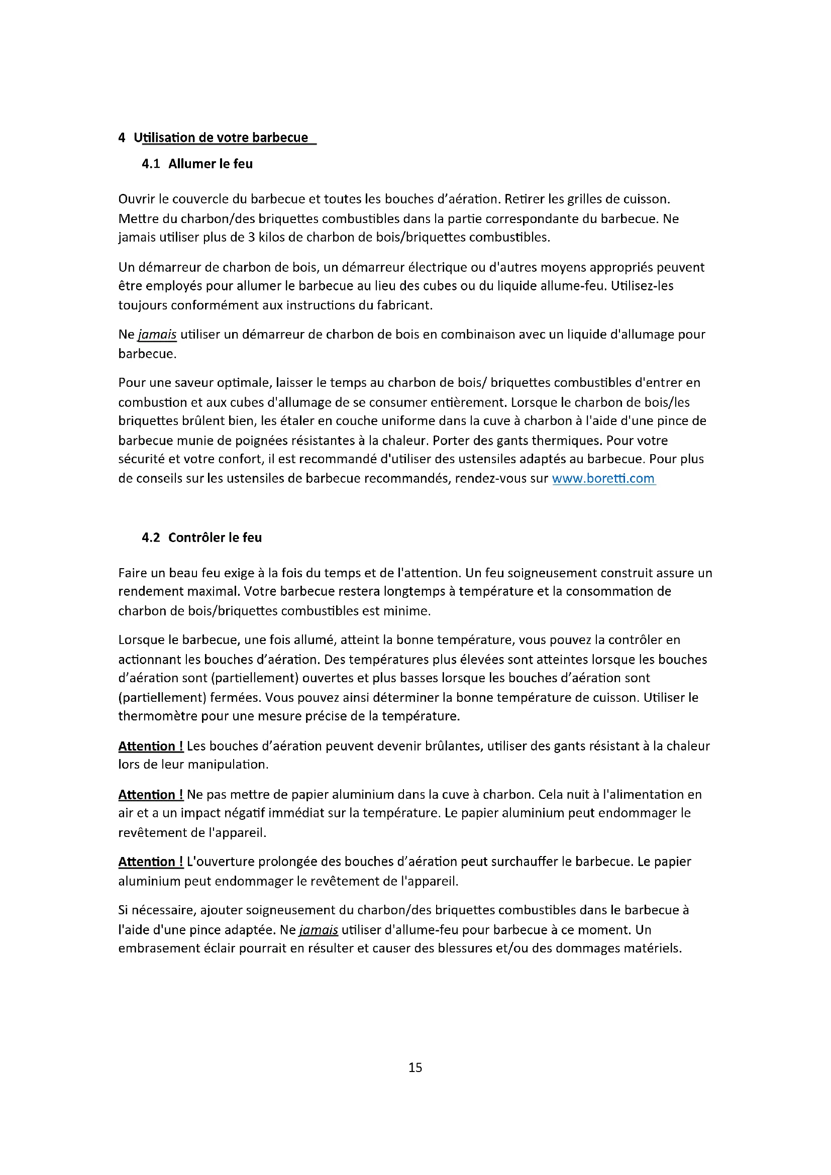 4 Utilisation de votre barbecue