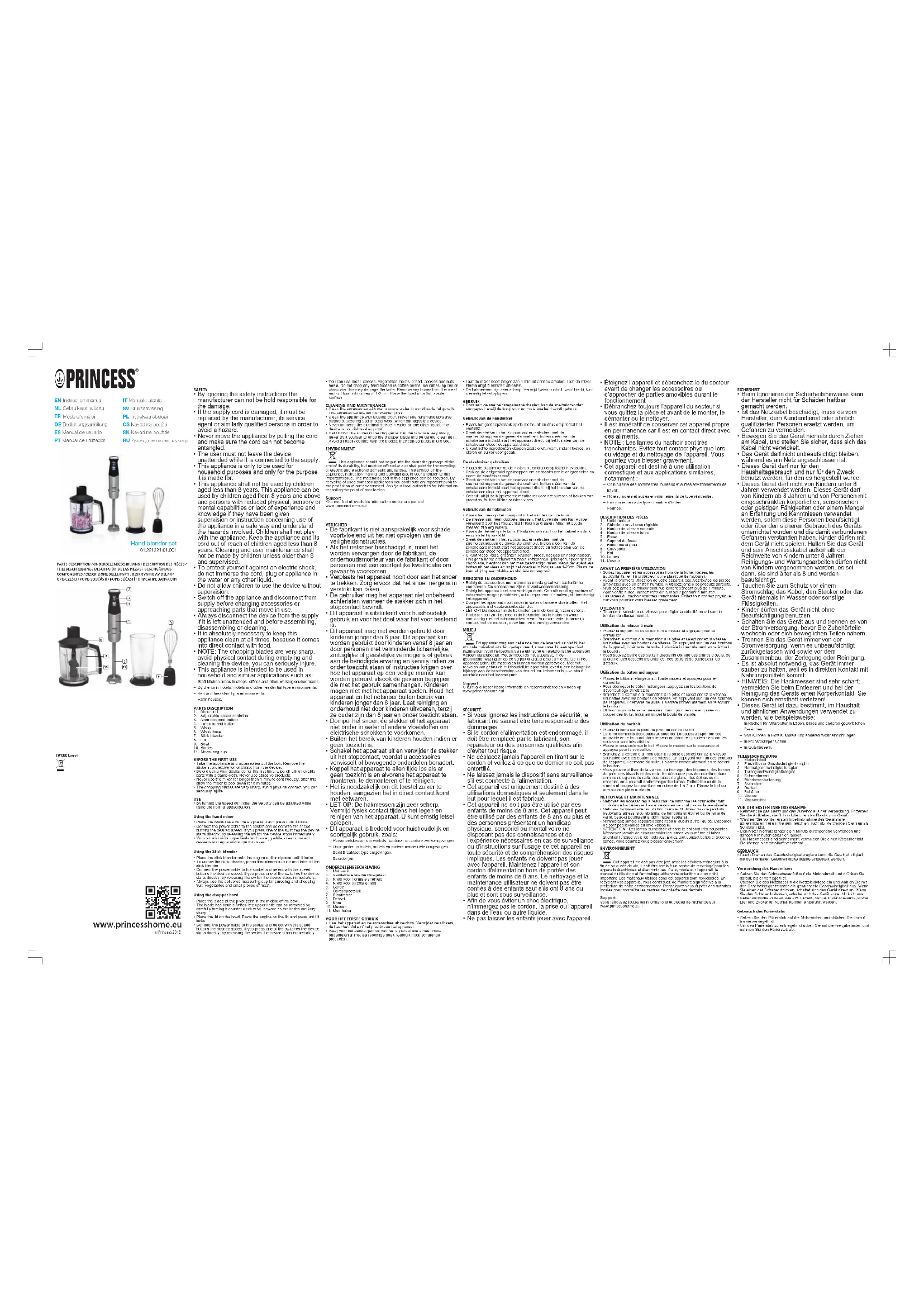 Retrouvez gratuitement la notice de l'appareil Hand Blender Set 221221 PRINCESS au format PDF.