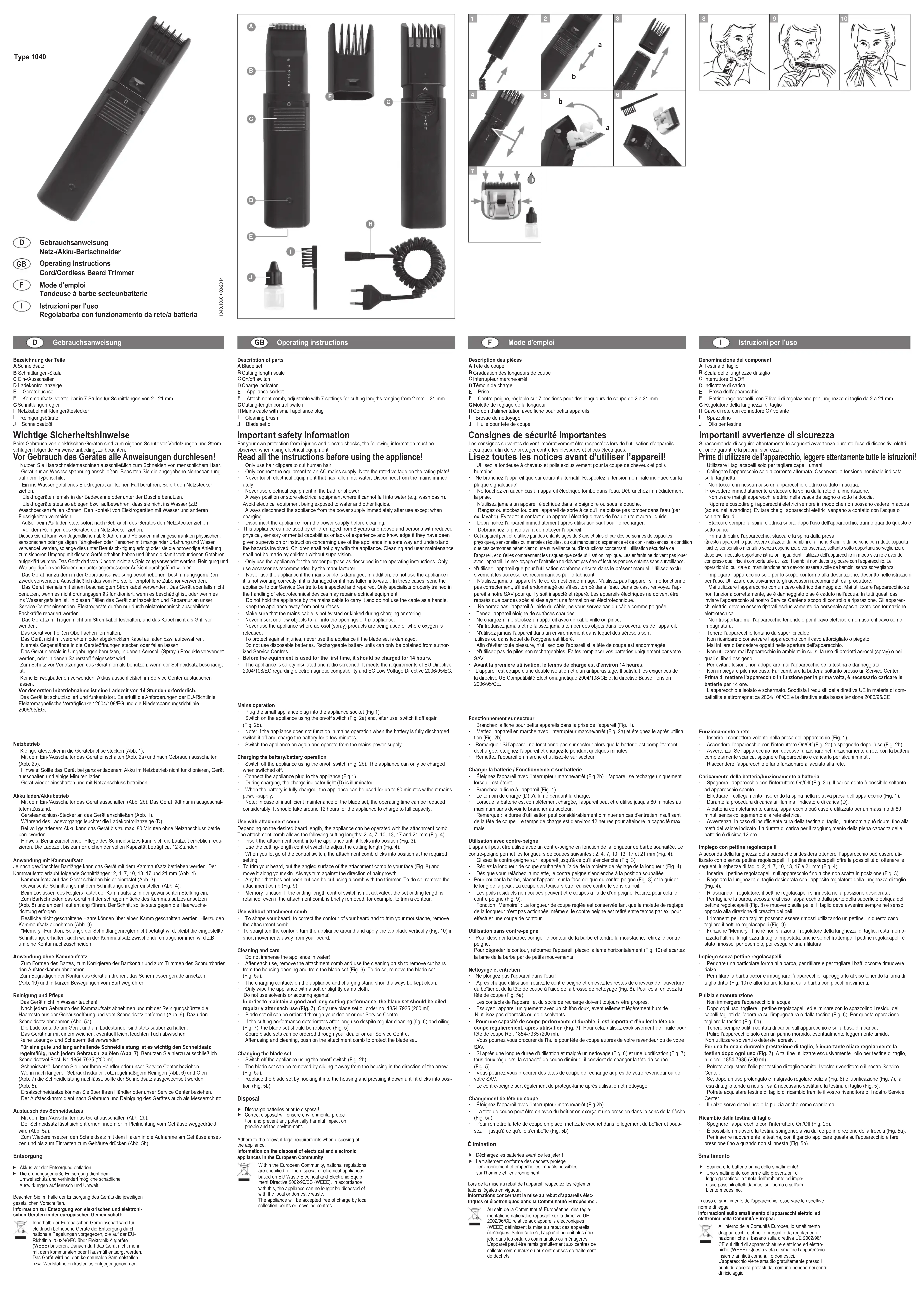 Classic A 1040 - Tondeuse à barbe MOSER - Notice d'utilisation et mode d'emploi gratuit