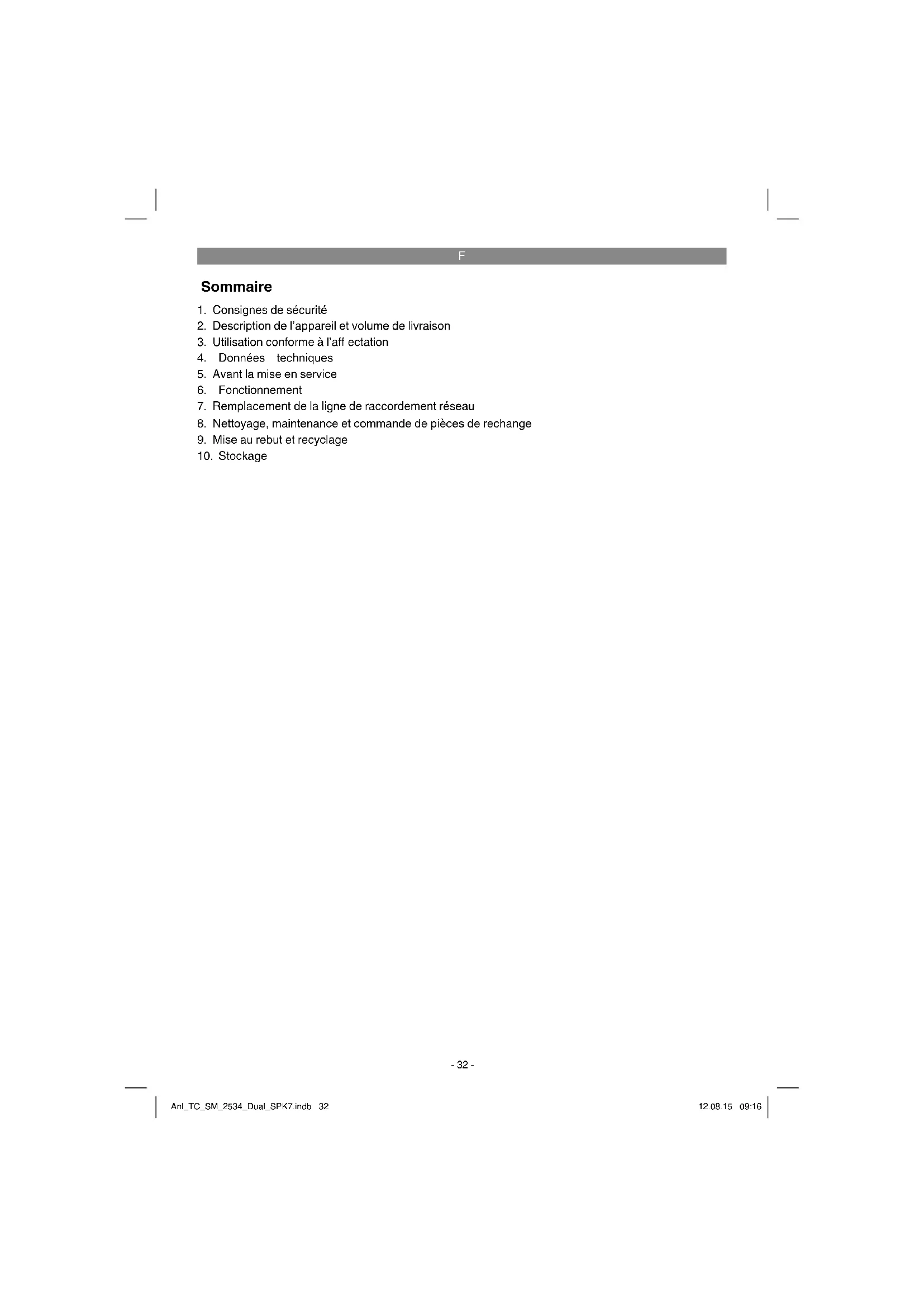 main-bras, si l’appareil est utilisé pendant une longue période ou s’il n’a pas été employé ou entretenu dans les règles de l’art. Anl_TC_SM_2534_Dual_SPK7.indb 36Anl_TC_SM_2534_Dual_SPK7.indb 36 12.08.15 09:1612.08.15 09:16F