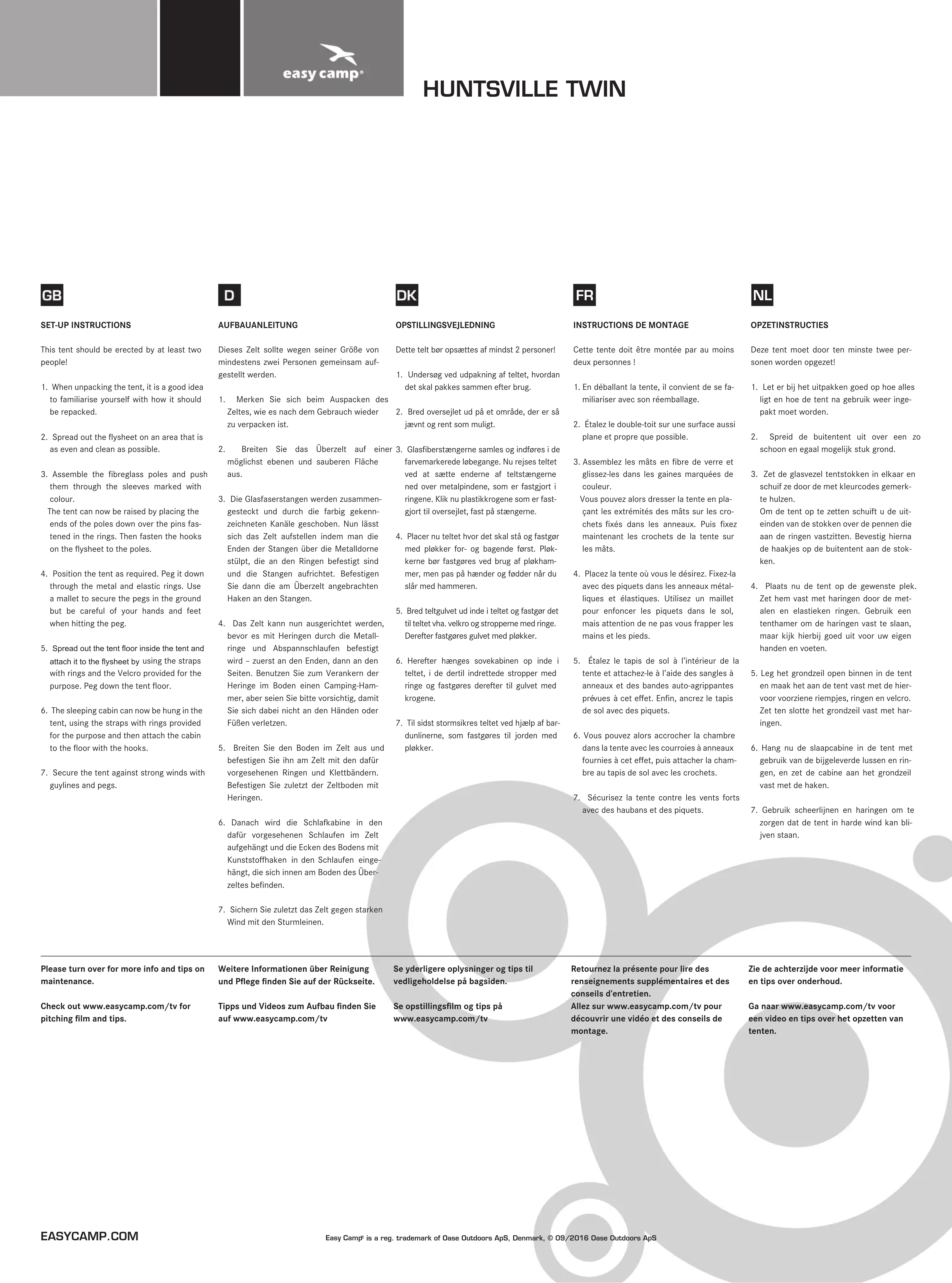 Huntsville Twin 2018 - Tente Easy Camp - Notice d'utilisation et mode d'emploi gratuit