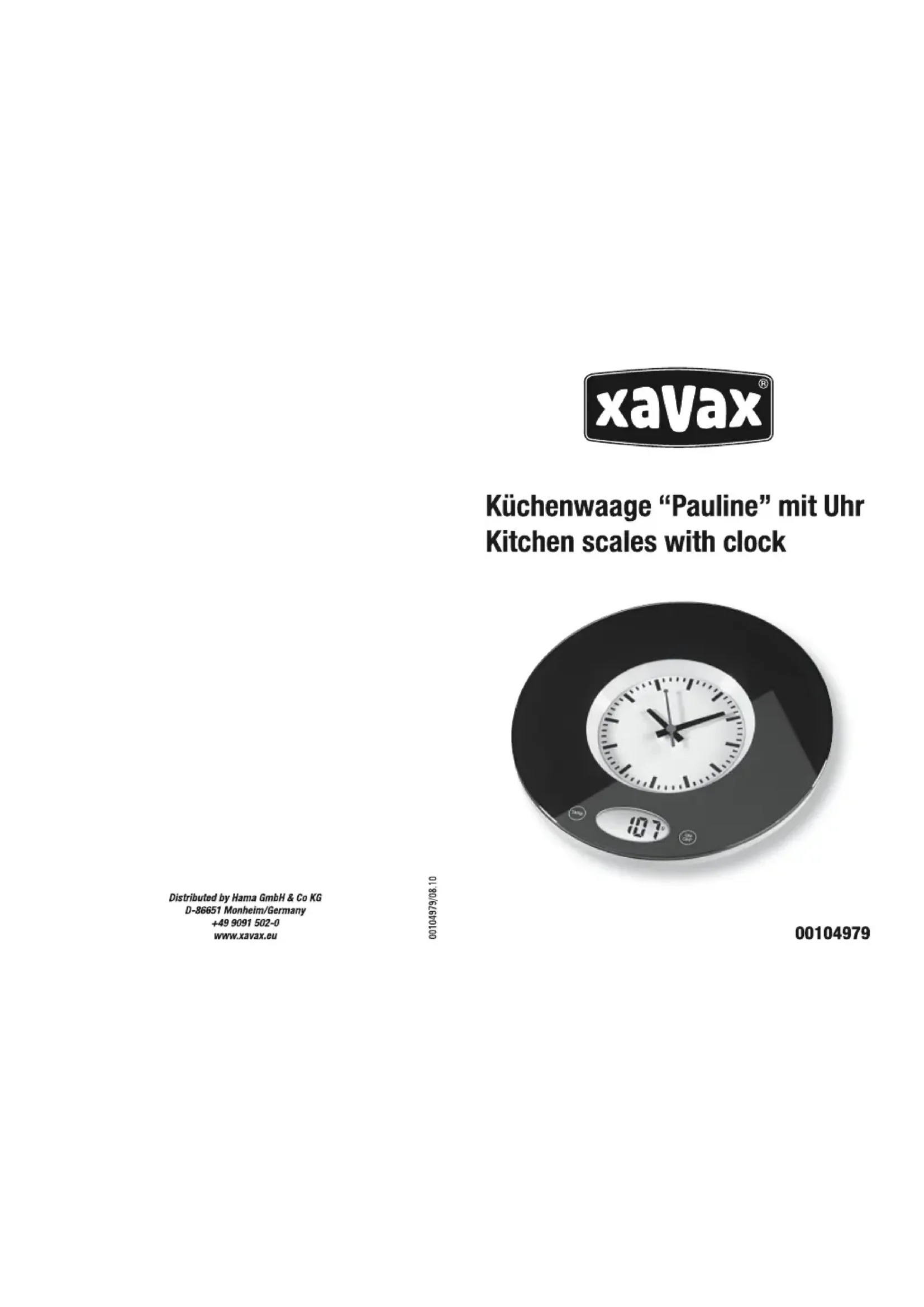Pauline 104979 - Balances de cuisine Xavax - Notice d'utilisation et mode d'emploi gratuit