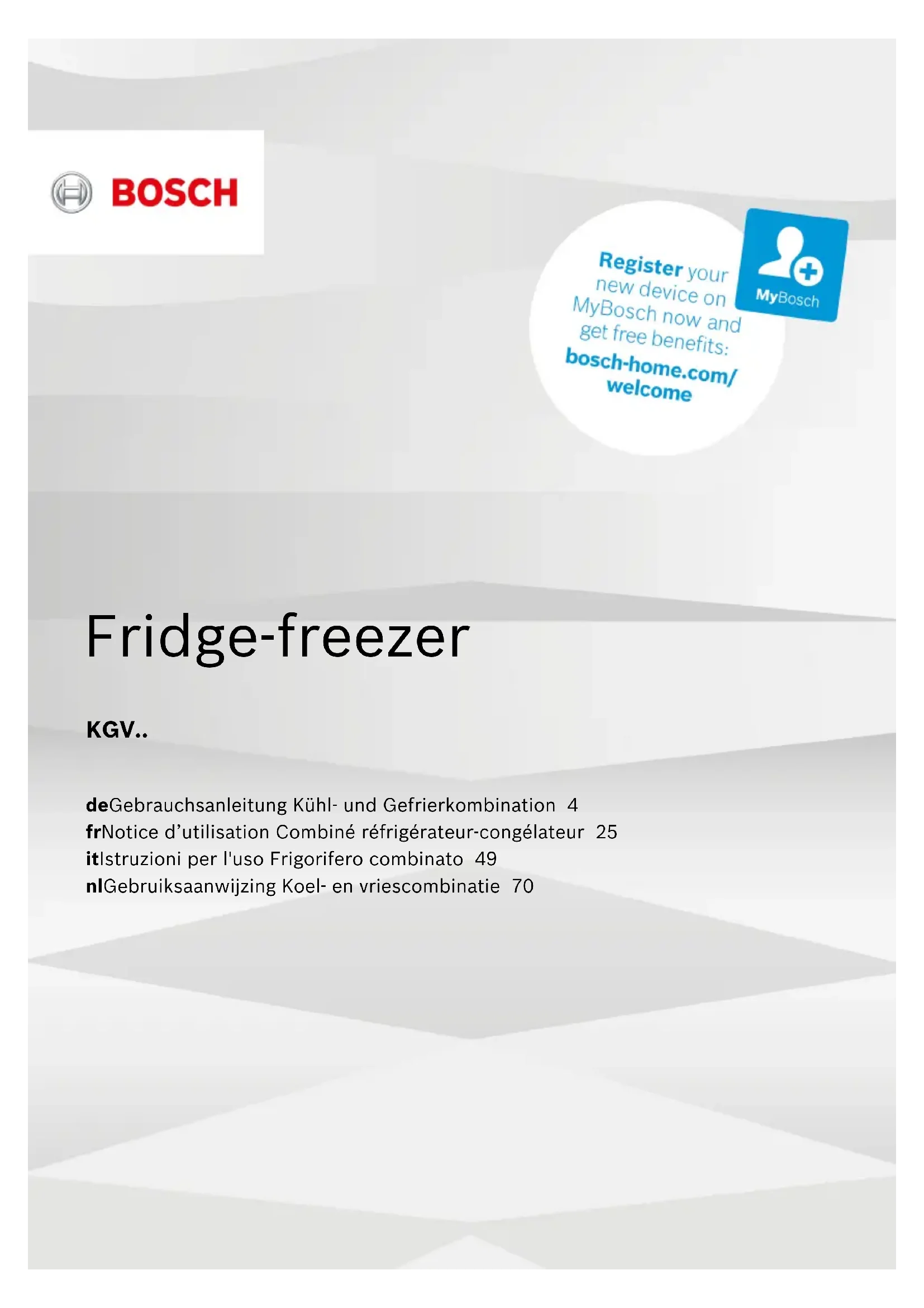 Retrouvez gratuitement la notice de l'appareil KGV39VL33 BOSCH au format PDF.