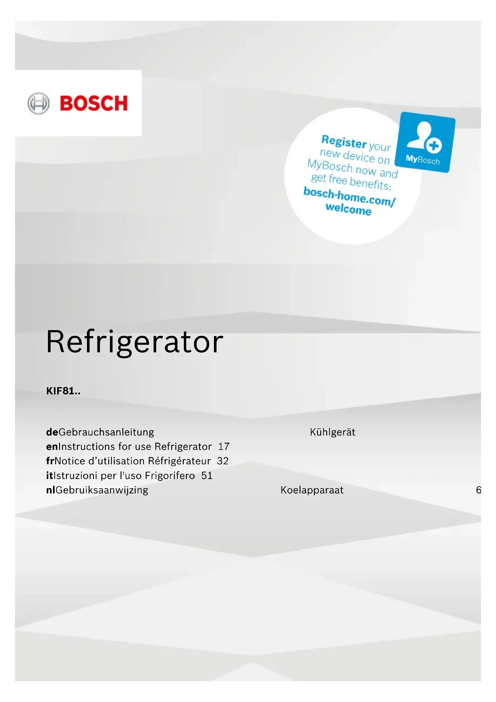 Retrouvez gratuitement la notice de l'appareil KIF81PF30 BOSCH au format PDF.