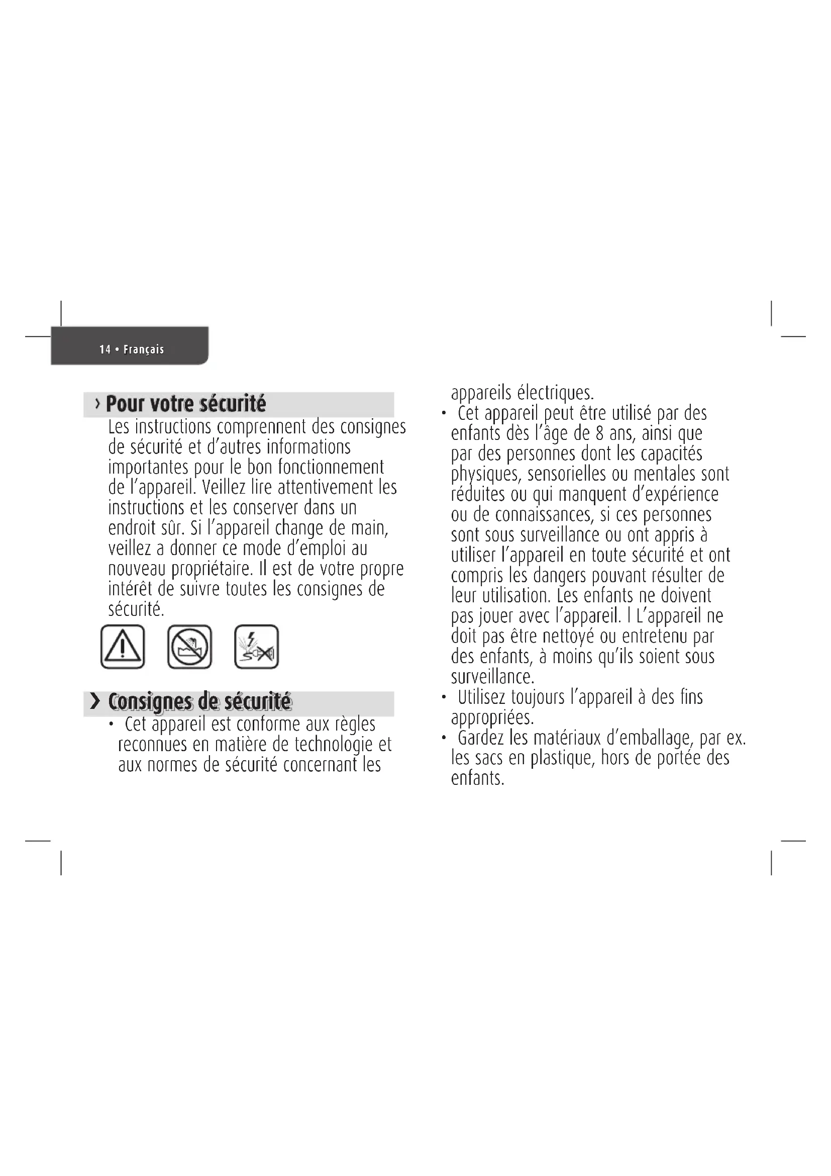 > Consignes de sécurité