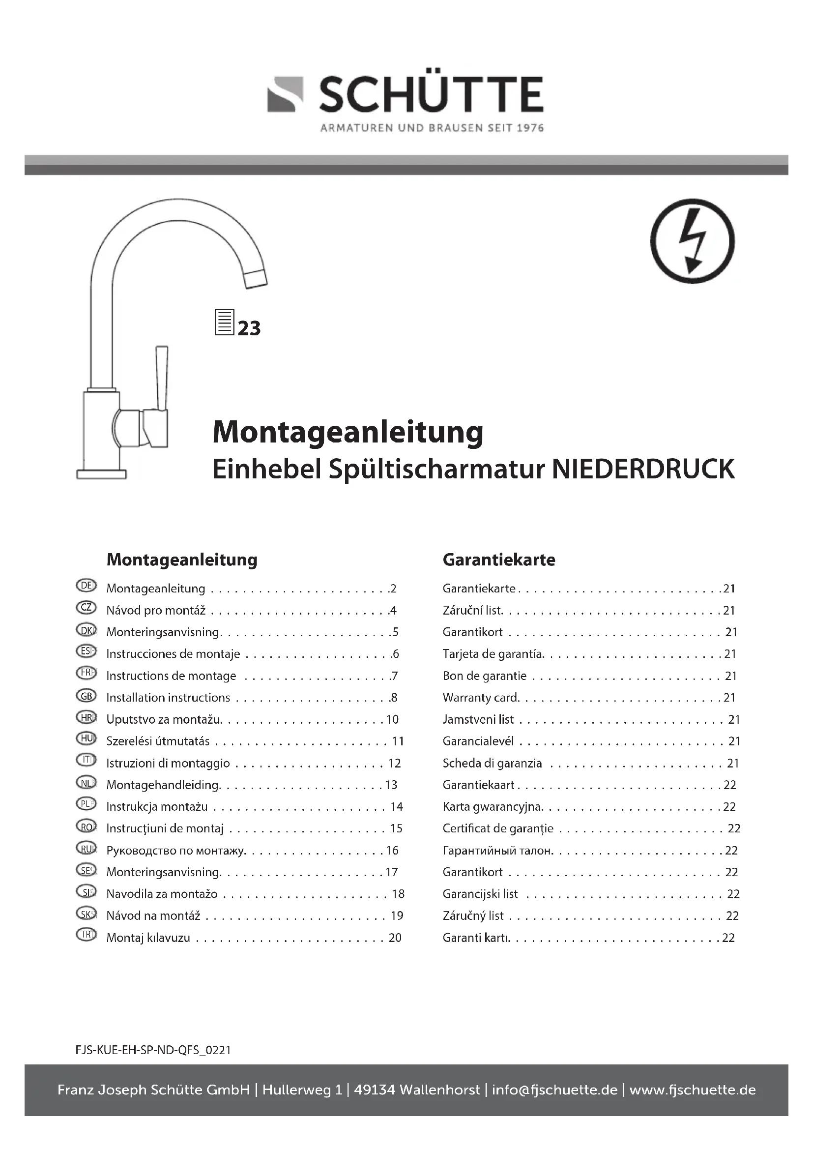 La société Franz Joseph Schutte GmbH de Wallenhorst accorde une garantie fabricant sur le produit que vous avez acquis, conformément aux conditions de la garantie mentionnées ci-après. La presente garantie n'afcete pas vos droits légaux à garantie résultat du contrat de vente avec le vendeur, ni les droits reconnus par la loi.