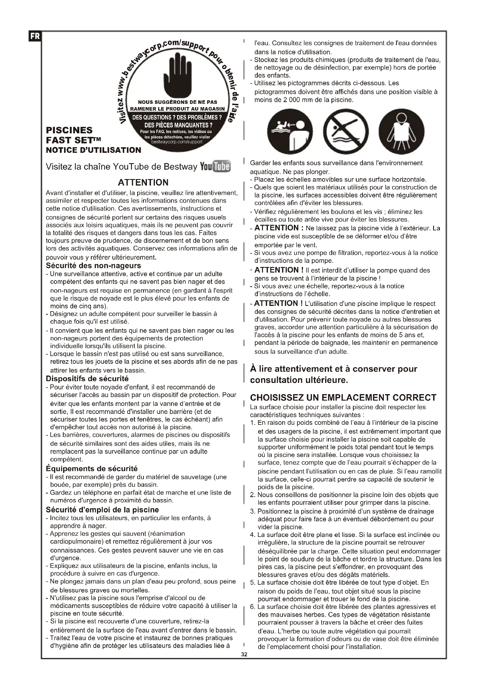 DES QUESTIONS ? DES PROBLÈMES ? DES PIÈCES MANQUANTES ? Pour les FAQ, les notices, les vidéos ou les pièces détachées, veuillez visiter bestwaycorp.com/support33