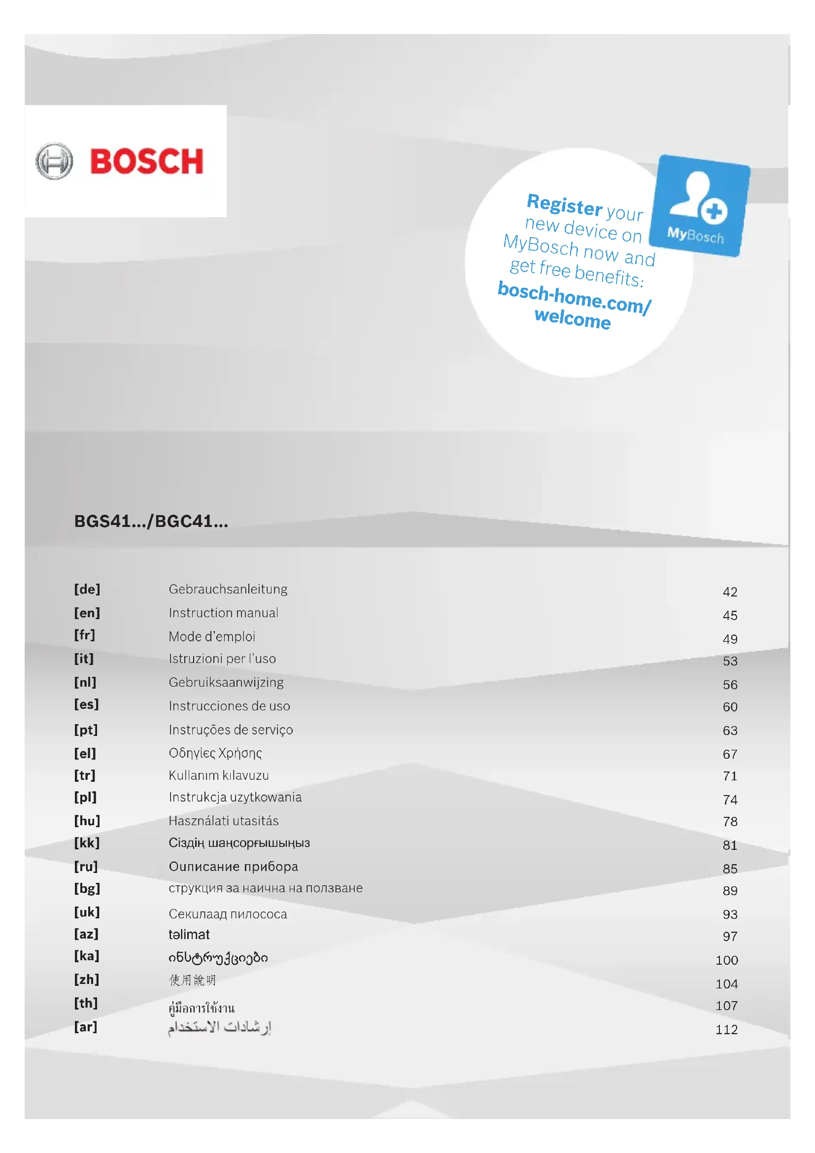 Retrouvez gratuitement la notice de l'appareil BGS41PRO BOSCH au format PDF.