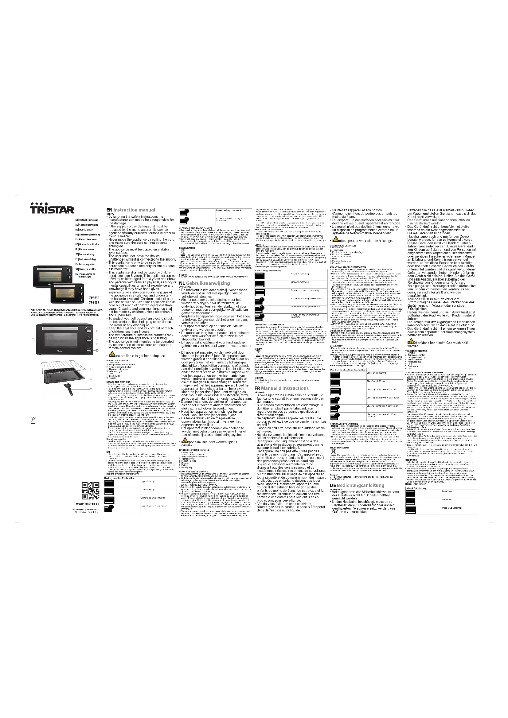 OV3635 - Four électrique TRISTAR - Notice d'utilisation et mode d'emploi gratuit