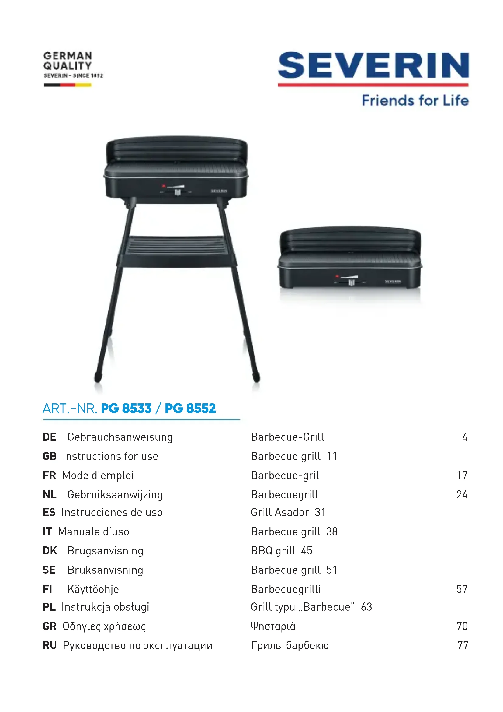 PG 8533 - Barbecue SEVERIN - Notice d'utilisation et mode d'emploi gratuit
