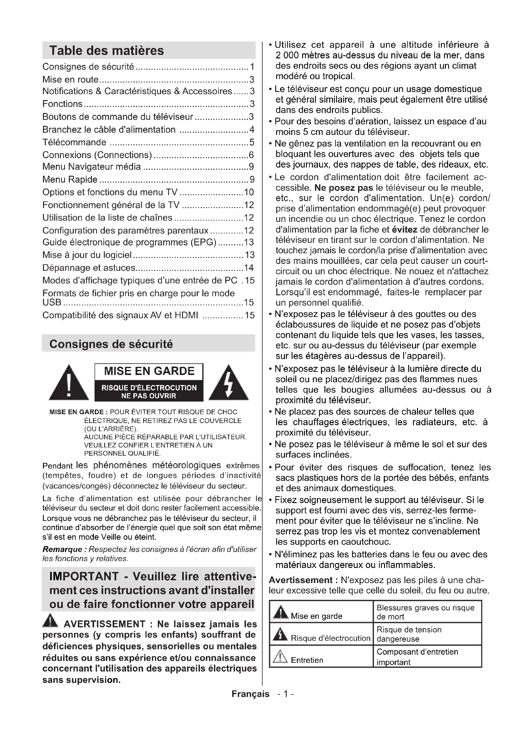 - Le téléviseur est conçu pour un usage domestique et général similaire, mais peut également être utilisé dans des endroits publics.